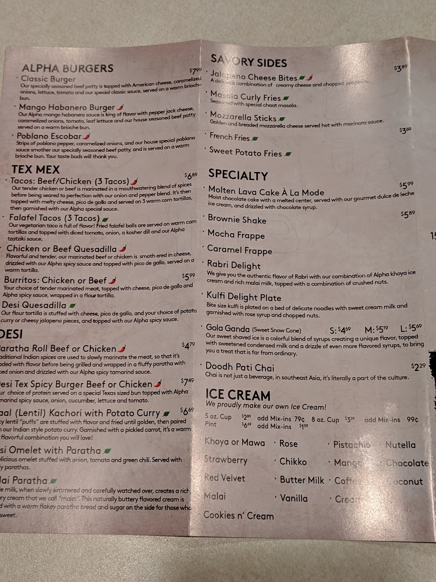 Read moreMove over agha juice. Alpha is taking over. They had a soft opening over the weekend in their hwy 6 location. Today was the first day of business. It looked really nice. We tried the khoya kulfi, it was out of this world amazing. The lahori falooda was epic beyond gargantuan proportions. It was not overly sweet like every other dessert shop thingamajigga, but actually had flavor to taste in it. We hadn't tried the food since we were only there for dessert. But heat assured, we will be bringing all our friends to try everything on the menu. The service was very friendly as well. Parking maybe an...