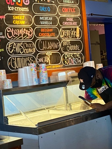 Read moreNestled in the heart of town lies Amy's Ice Cream, a haven for those seeking exceptional homemade frozen delights. The ice cream here is nothing short of spectacular, boasting flavors that dance on the palate and leave you craving more with each spoonful. Service at Amy's, while a bit leisurely, is redeemed by the warm and inviting demeanor of its staff. One standout among them is a young gentleman sporting glasses, whose attentive care transformed my 30 min wait into a delightful experience. Seeing him back after an absence was a pleasant surprise, and his presence truly enhances the charm of this establishment. As for the ambiance, the only slight drawback was the volume of the music, which I found a tad too loud for comfortable conversation. A minor adjustment here could elevate the overall experience for patrons looking to savor their treats in a more relaxed atmosphere. However, the highlight of my visit was undoubtedly the impeccable service extended to my family. Despite the flurry of activity behind the counter, our server ensured that we were promptly attended to, making us feel like valued guests in the midst of the hustle and bustle. It was very nice of him to start a small conversation as he was working his way down the line until he got to my family we got to talking and I learned that he went to school in Kansas which happened to be not far from where I myself went to school. One small hiccup arose when I noticed a discrepancy in the promotional offerings. While a free Crushin' has always been advertised for guessing the quote, I noticed a tall gentleman gave someone else a free ice cream coupon while everyone who has worked there in the past gives a free Crushin'. It's a minor detail, but consistency in promotional offerings could enhance the customer experience and ensure fairness for all patrons. In conclusion, Amy's Ice Cream is a delightful destination for those craving homemade frozen treats. With its exceptional flavors and attentive service, it's no wonder this place holds a special place in the hearts of many. I will definitely be coming back and my family and I look forward to seeing...