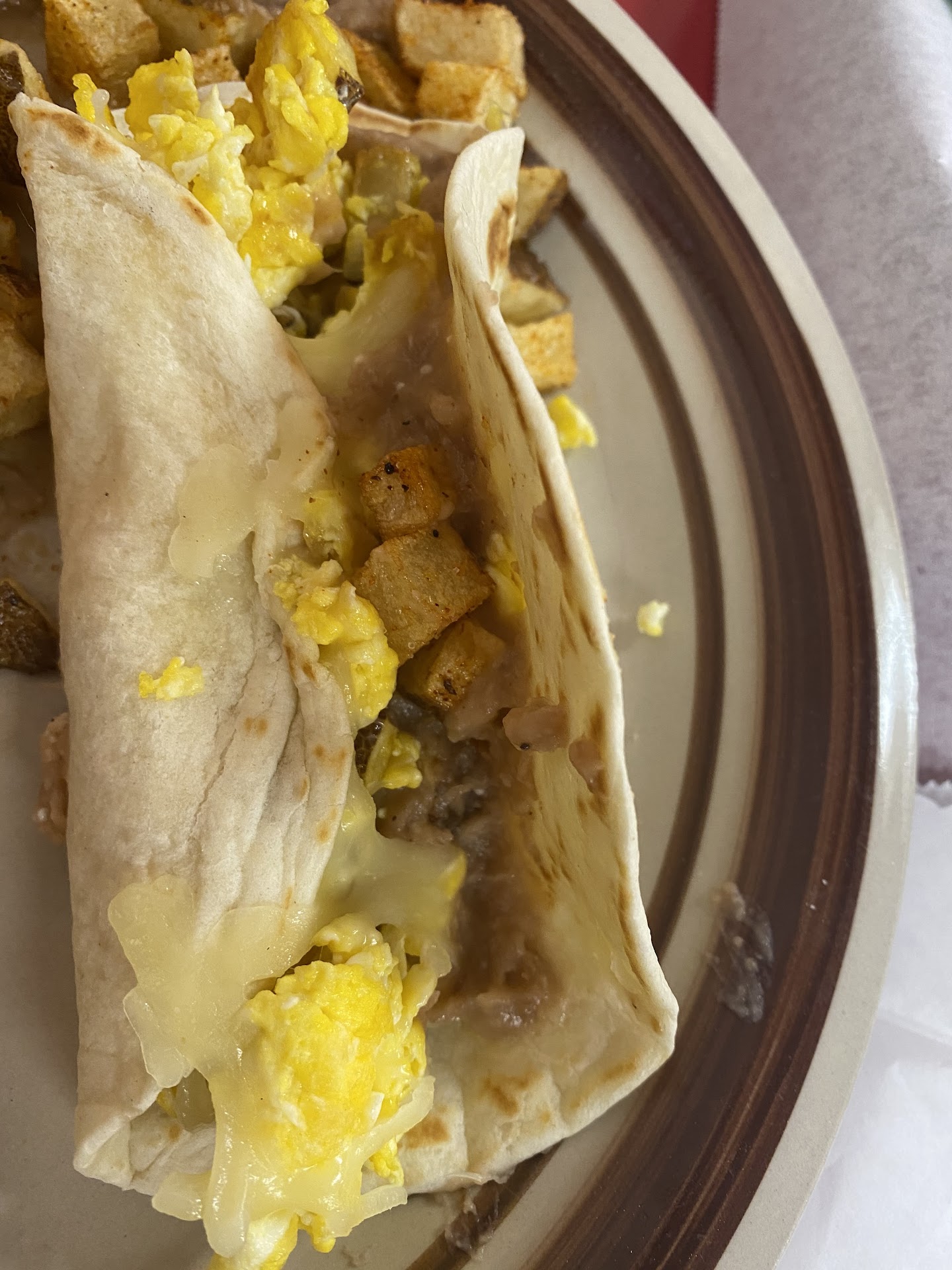 Flour tortillas are not homemade but they do come toasted, however - they do make handmade corn tortillas which were absolutely delicious. There’s some really good flavoring in the beans and the salsa everything seems to have the right amount of salt in it or flavoring can’t really describe what’s in there per se, but it is different than your regular Taqueria or Mexican restaurant.
