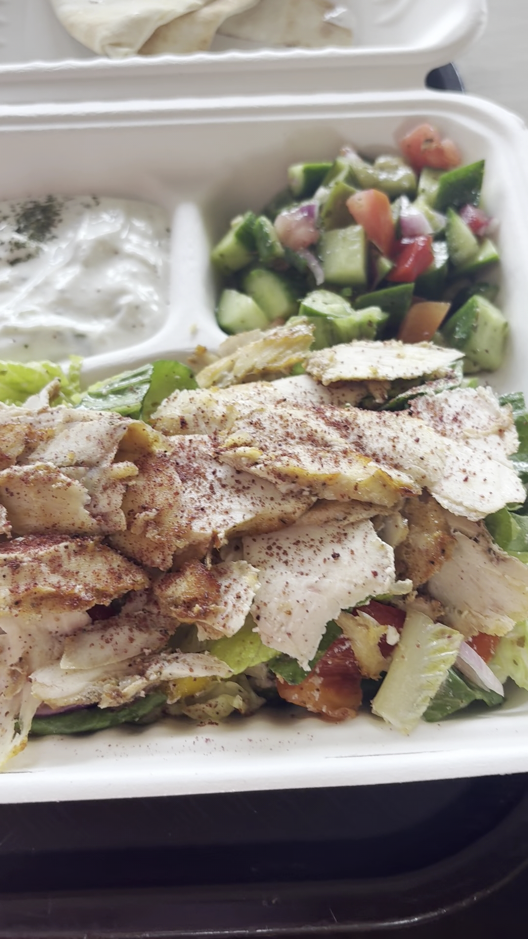 She used the yogurt spoon from the display counter , scoop up our yogurt from the to go box and put it in the bowl and put the spoon back in the yogurt on display …. Wait Whaat , then grabbed the salad Spoon and scooped our salad in the bowl and put the spoon again back on the salad on display….. Same to baba Ganoosh and Rice