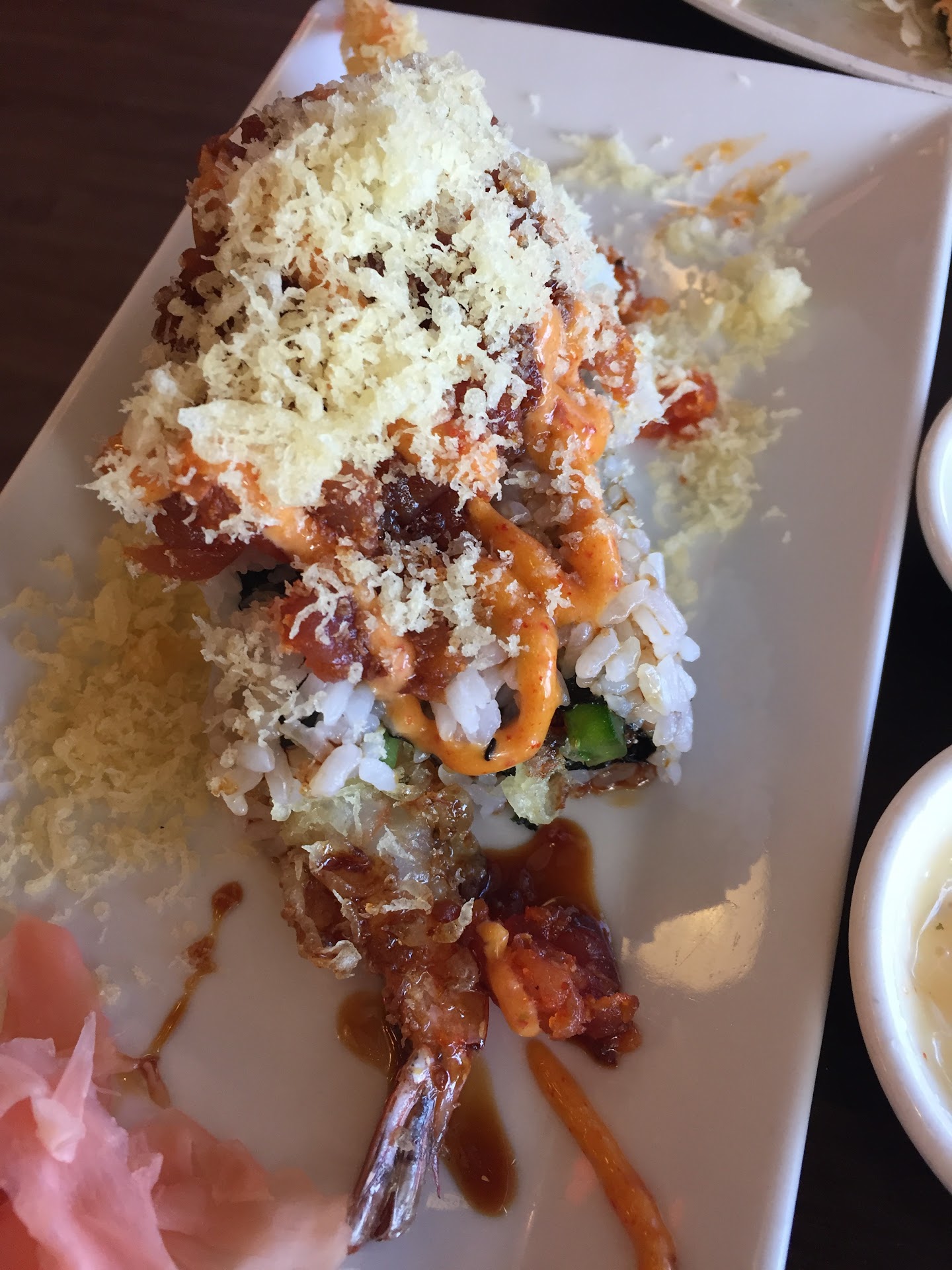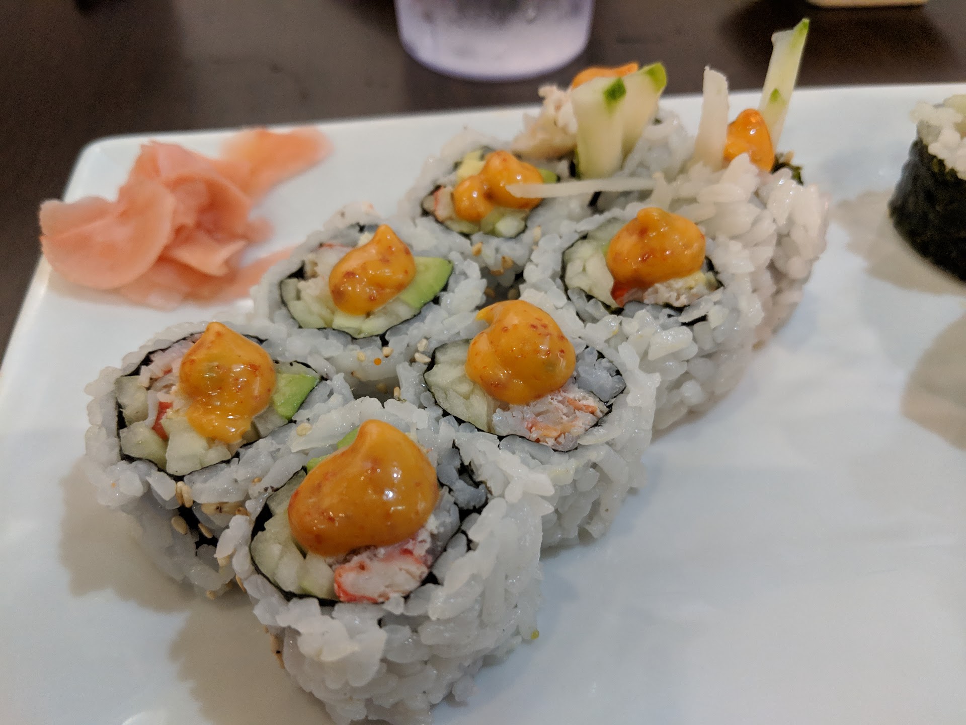 I ordered the crazy roll, spider roll and Houston roll (see picture). I have been to several other casual sushi places before usually around Chinatown, but only a few places pay particular detail in their arrangement. +1 star for presentation.