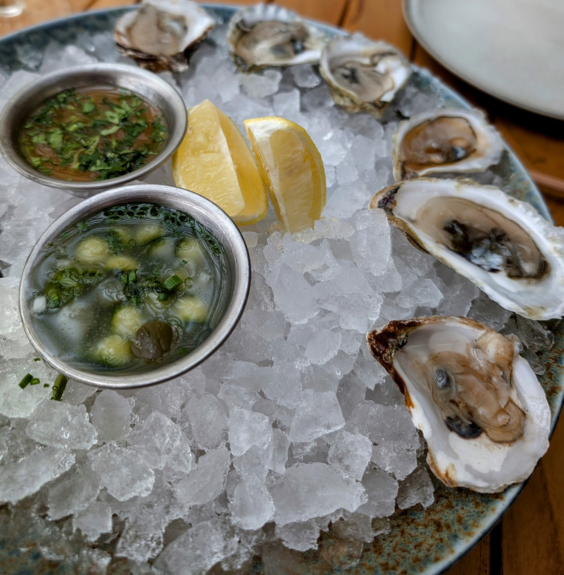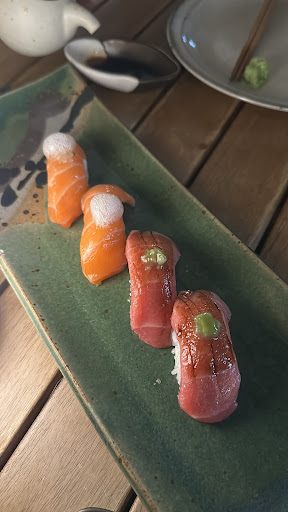 Read moreAzumi - where to start. I'll preface this review with the fact that we went around 3:15pm, and stayed probably until 5:30. So a shift change etc might have affected our experience. Drinks and food were very slow to arrive - sometimes 20mins to get a drink or a nigiri. PEI Oysters were lackluster with oddly wide variety - from size to shell. While mignonette was good, the pairing of pickled cucumbers was just weird - they would have overwhelmed the oysters. The vegetable tempura overall was good - except for kinoki mushrooms - who got the brilliant idea to take the most delicate mushroom, dip it into batter and deep fry it?? You just tasted oily batter and the only mushroom was the base stalk which was chewy and inedible. The sake nigiri was another miss - you had the thinnest slice of salmon sitting on a huge amount of dry and over seasoned rice - so much so we removed half the rice before eating and it didn't help. The hand roll was not only rice heavy but damp - if you serve hand roll soon after it is made you can bite cleanly into the nori - clearly this was not that - hard to bite into, lotsa over seasoned rice, and little fish. The only hit of the evening was the Branzino - at 29$ it's not cheap - but it's two good sized fillets with crispy skin, delicately placed on ponzu butter sauteed mushrooms and spinach - delicious - should serve with a spoon as it was difficult to pick little mushrooms with chopsticks. Table service was good, manager was attentive, but overall an...