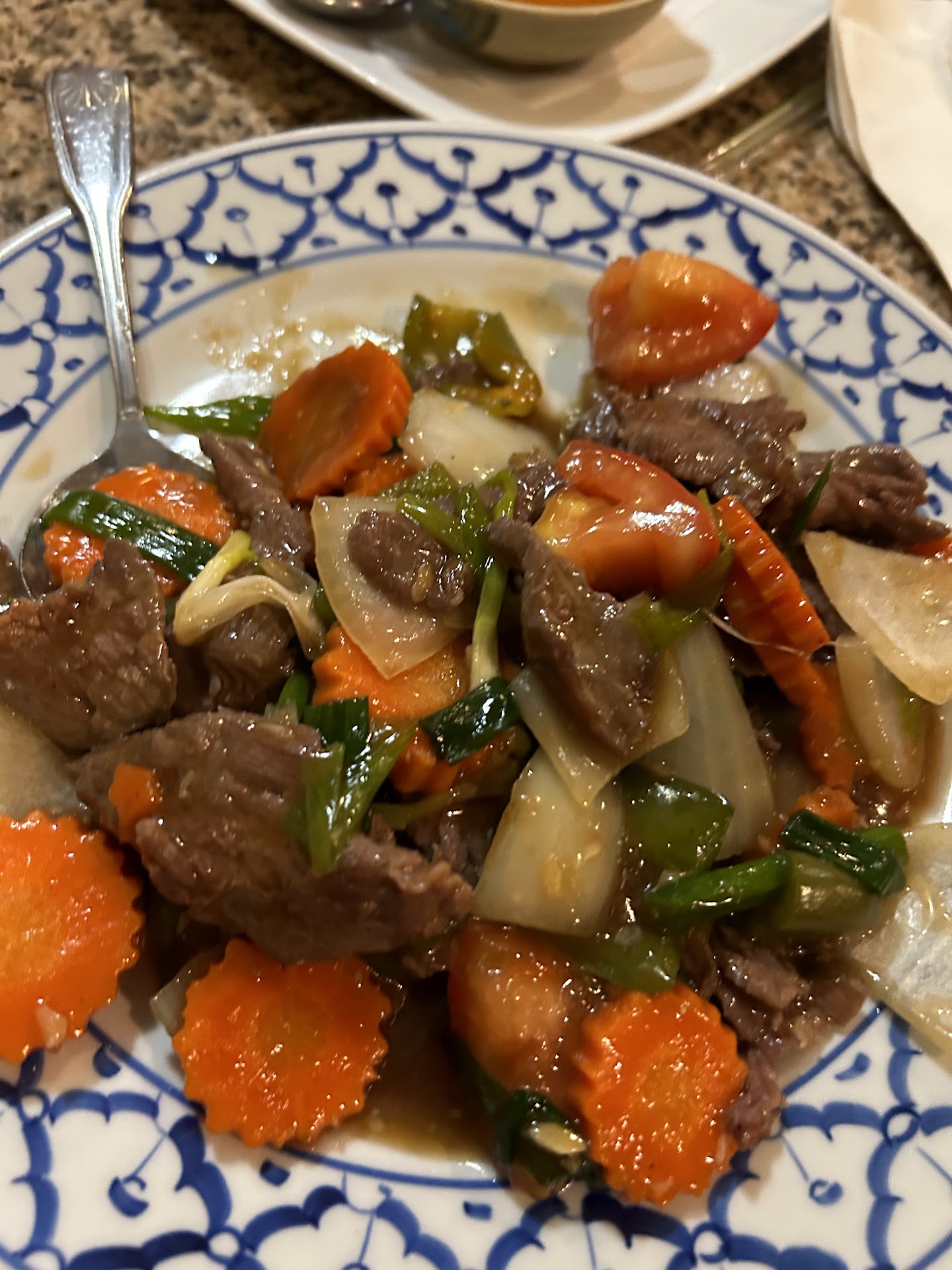 I called ahead because Google said the hours of operation might be incorrect. There was no answer and something that sounds similar to a fax connected. I drove over and when I arrive I showed her the number and explained I got it from Google and asked if it was correct? She pointed to the phone number on their laminated counter menu and it was correct. Me: ok I didn't get an answer but I'll have the green Curry no meat and spring rolls. Her: took my payment. 18.xx Received my order maybe 15 min later and headed to my appointment. After opening I immediately saw giant carrots 🥕. 1. I hate carrots 2. It's not listed in the description as an ingredient in the green Curry. As I continued to dodge the carrots and sip the broth I run in 🥦 broccoli another vegetable I hate also not listed as an ingredient in the description of "Green Curry".