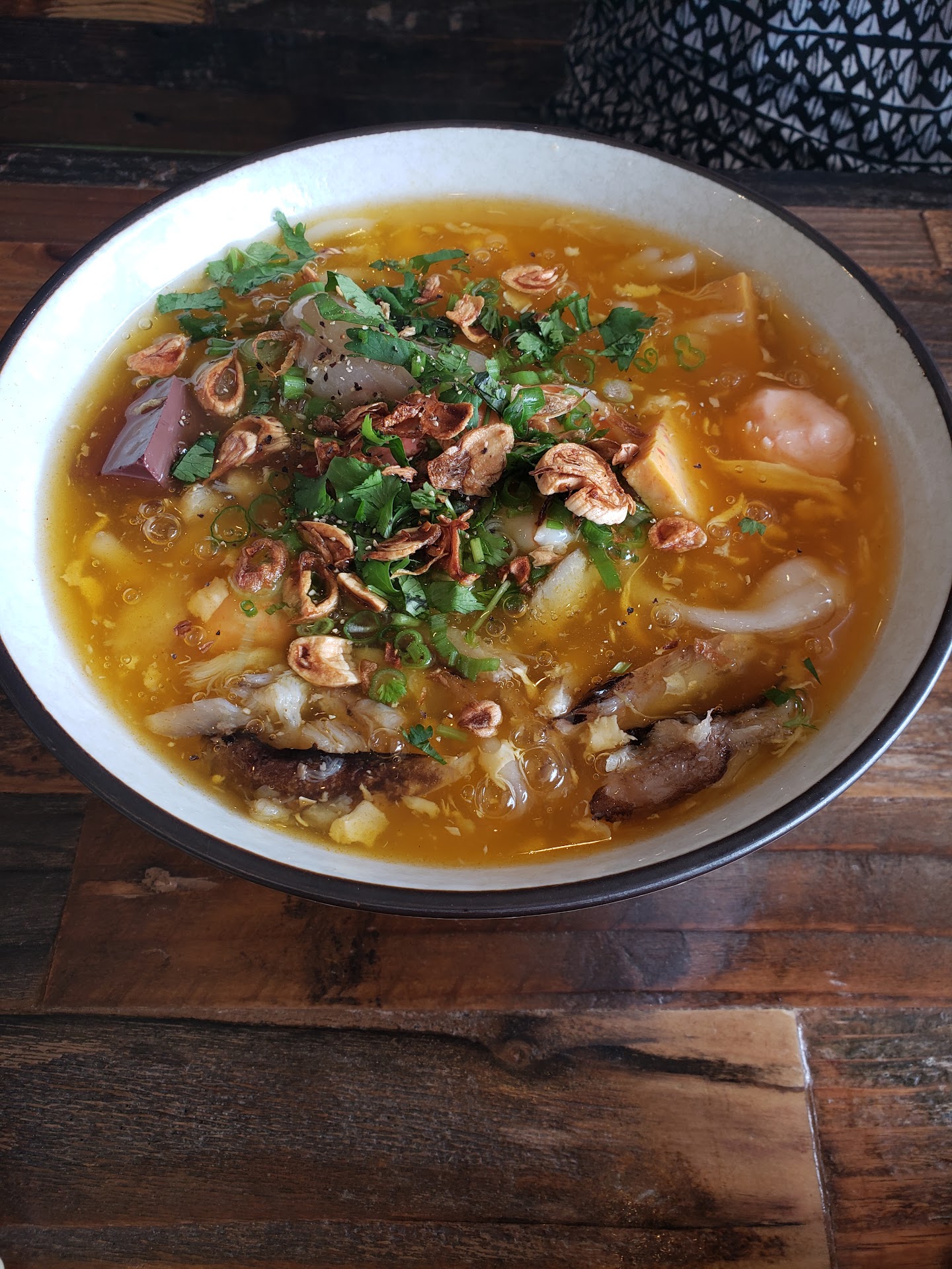 Cons: broth was blank, no crab or shrimp smell. No quail egg available at all. Crab paste: taste like pork paste and absolutely no crab taste in there. Shrimp paste: no smell of shrimp in there either but probably because too much seasoning there. Crab meat: exactly 5 crab fingers in the bowl (banh canh Hai San). I wish you would put actual crab meat , not crab finger in there. It has more smell and taste to it. Squid did not taste good either. And I would prefer fish paste (cha ca) vs shrimp/crab paste. It would be more authentic banh canh.