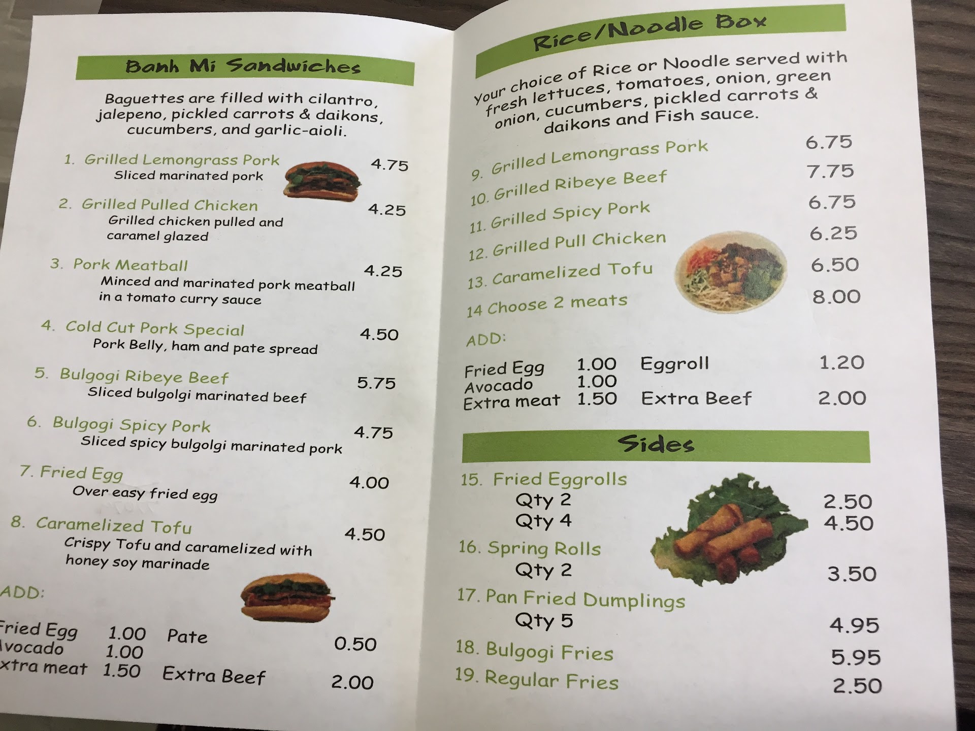 The hidden gem of the energy corridor, this place is a MUST VISIT. This hole in the wall features banh mi sandwiches, rice dishes, bulgolgi fries and bun (noodle dish). It's pretty legit y'all. Prices are fair, parking aplenty, restaurant cleanly and the food is so worth it. I live in the area and I literally squealed with delight when I saw this restaurant. I LOVE banh mi sandwiches but have not been able to find a place I really liked since I moved to Houston. Tired or tasting the same bland butter sandwiches with dry meat frequent in many banh mi shops, the banh mi at bao bao banh mi is amazing. I had the pork cold cut (similar to combo style at traditional places) which has different cuts of pork including pork belly. It is smeared with pate and you can ask for extra for a 50 cent upcharge. The bread? Crisp. Meat? Sufficient amount, not too fatty, good combo. Amount of mayo and pate? On point! Thumbs up. I also had the bulgolgi banh mi. They use ribeye and it is seasoned perfectly! Also another favorite. I liked that you can add on avocados, eggs, extra pate to really pimp out your sandwich.