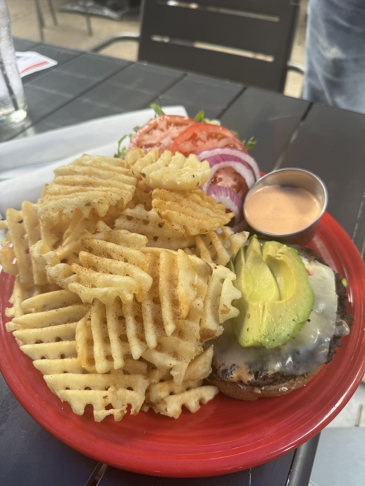 The hamburger was so over cooked it was dry, flavorless not quite a hockey puck but not to far from it. Again dam near inedible.