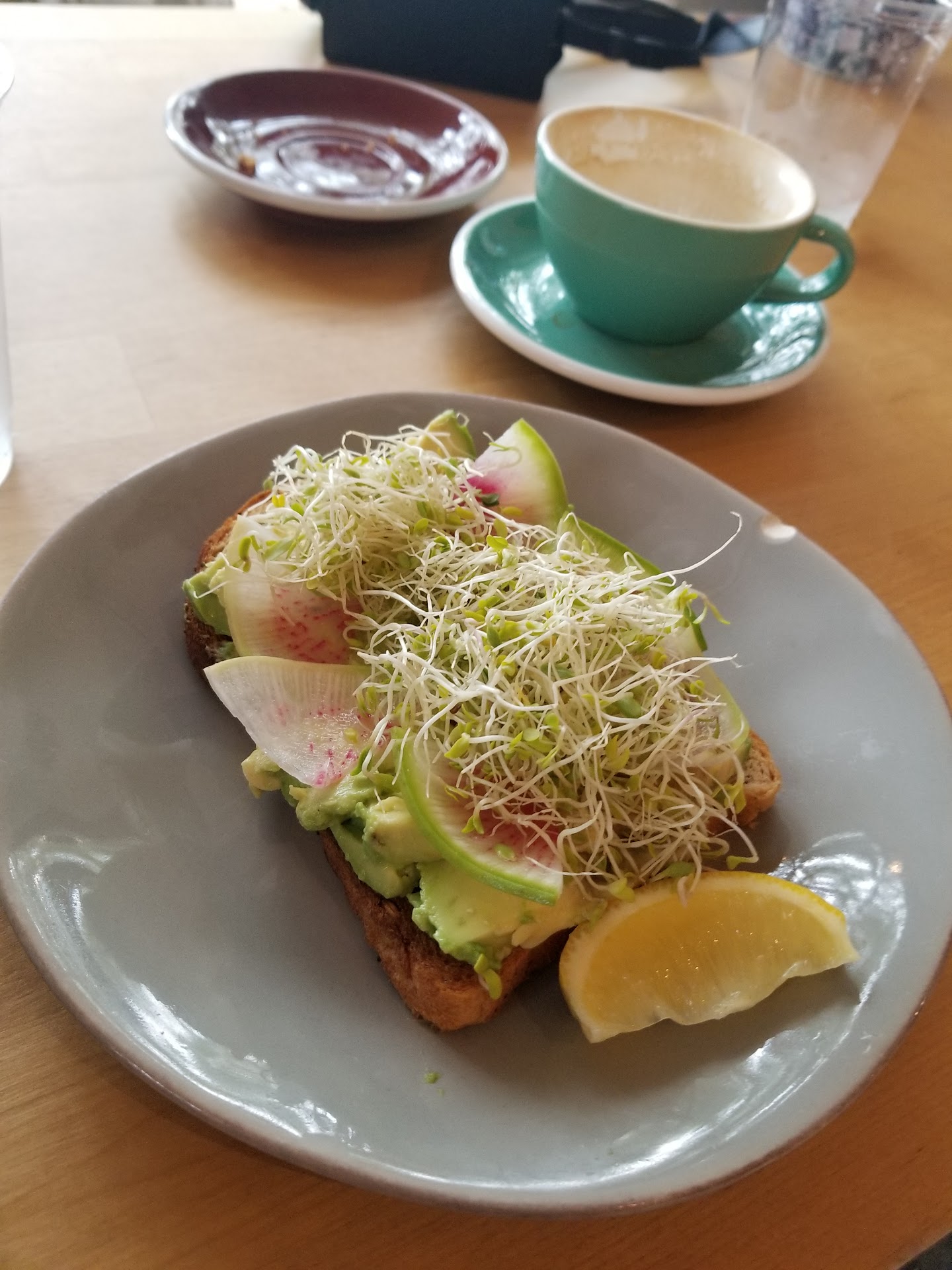 Cappuccino wasn’t special- 2/5. Disappointing that they serve all drinks in to-go cups. I’m doing my best to limit micro-plastic exposure, so I avoid drinking hot drinks in plastic-lined cups bc they melt. —Anyways I would come back here and order a cold drink instead.