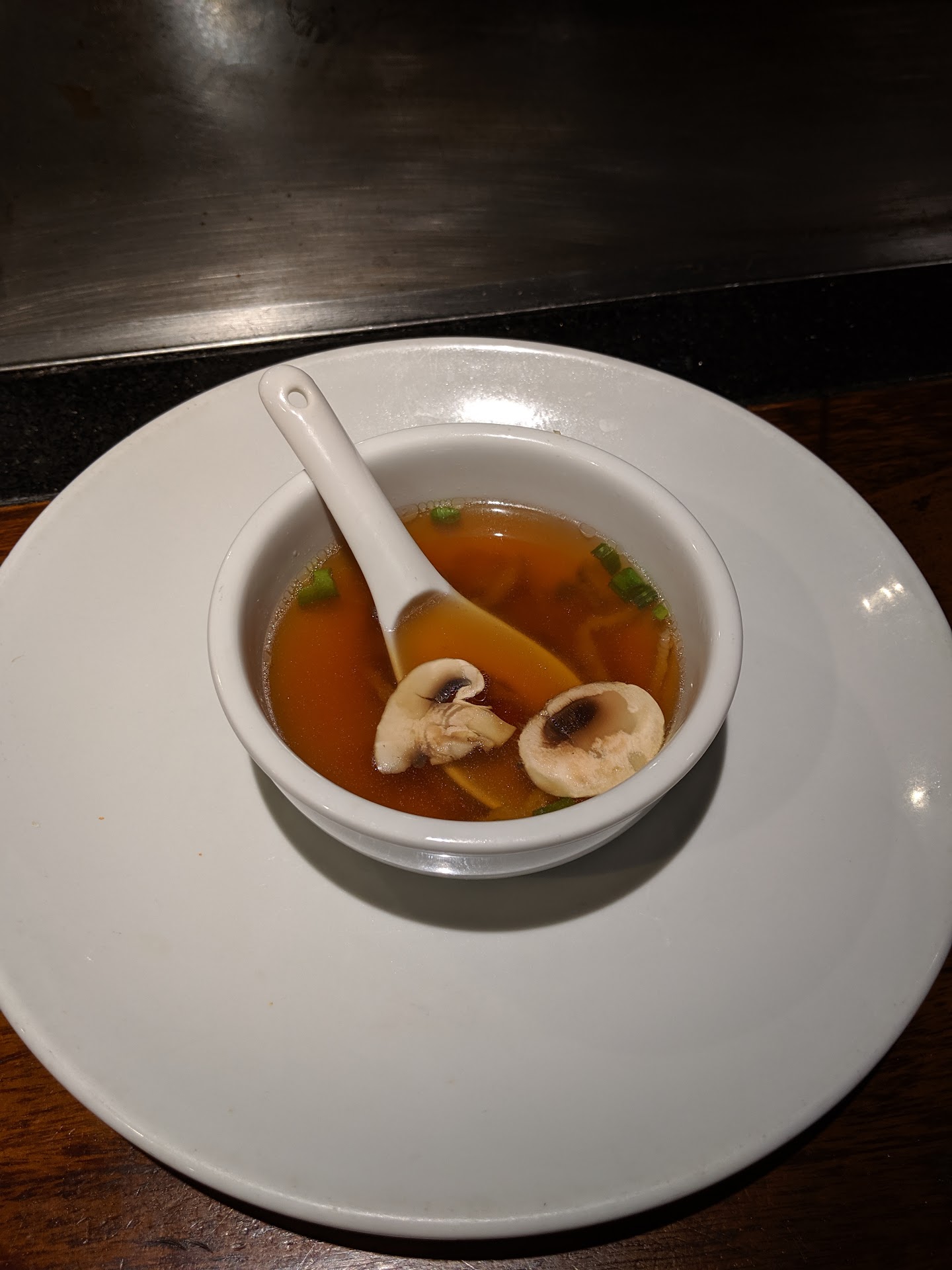 Also with the meal there was a salad with ginger based dressing, very delicious, as well as a chicken broth based mushroom soup, which had excellent flavor.