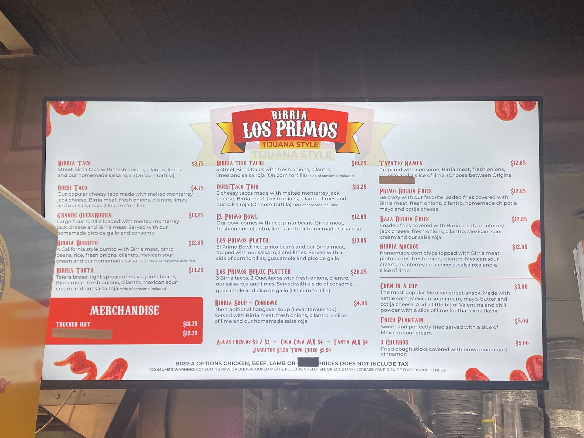 REVIEW FROM 3 YEARS AGO: Tacos de queso Birria are so delicious, the vibe here is pretty awesome too. Can’t go wrong with birria los primos, keep it up.*