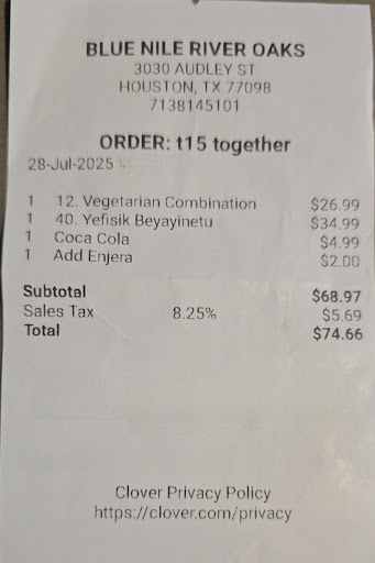 Restaurant and it's restrooms are both squeaky clean. Lots of Ethiopian artifacts, advertisements, artwork & adornments decorate the walls. They truly did a fantastic job decorating.