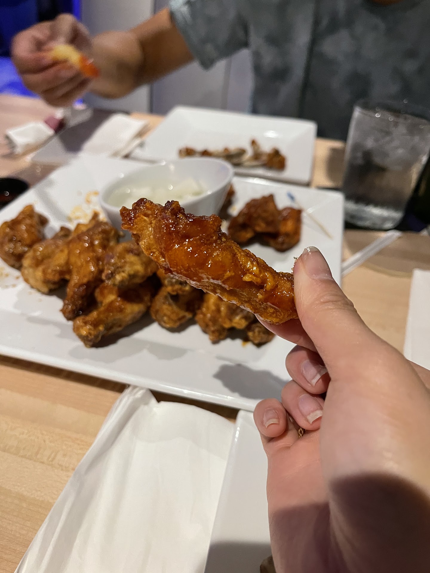 This establishment seems nice upon arrival but this image quickly diminishes the moment you begin your dine-in experience. The customer service was despicable! No one greeted us at the hostess booth. We were left to wonder around the restaurant, searching for a clean table. After seating ourselves, no one came to the table. I finally made my way to the bar/register to find an employee. It took an additional extended length of time for the waitress to come to our table and it took a lengthy time for her to bring us several draft beers that were without carbonation and dirty tasting (Stella and dos equis to be exact). Additionally, the round table in the corner in which we sat wobbled and our beers spilled all o er the table. We switched tables mid-experience. When we ordered, the waitress forgot to put in our order for the main entree (spicy garlic wings) and brought out a side of cabbage (We were starving!). Once they arrived, they were missing the main ingredient, the sauce! When we asked for a side of sauce for our dry wings, we were told that they could not bring us a side. The waitress said the sauce was "expensive." So the order that essentially wasn't taken in the first place, had to be taken back to the kitchen. Once we bit into the wings, it was clear that they were twice fried wings because they were extremely hard and overly crunchy. However, it was evident the first fry of the chicken was the morning of or the day before. The wings tasted old and the meat of the chicken was stiff. Of course we had plenty leftovers, as the food was disgusting 😒. I then had to go back to the bar to find our waitress, who mysteriously keep disappearing, to get our bill. On top of all of this there was one semi-large party, screaming obscenities at one another, one step away from fighting. About an hour after our meal, my stomach started cramping as if I had food poisoning. 😩 The food was around $69, plus tip. This was one of worst the experiences I've ever had in my life and I would never consider going back, nor would I recommend this establishment to anyone. I didn't even feed the leftovers to my kids. I threw the food in the trash. This restaurant should pay you to eat here! This is...