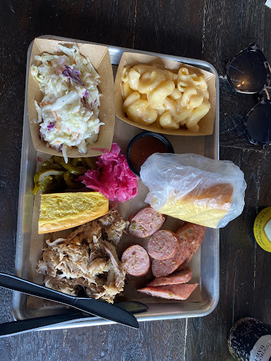 Read moreI want to give them 5 stars just based on how delicious the brisket was, because that really is the main thing I look for in Texas bbq. Pro-tip, always ask for the "moist" brisket, even if you hate that word. It's worth it! I took off one star for the inconsistent quality of the sides, though. The loaded mashed potatoes & creamed corn were delicious, and the pickled onions that came on the side at no extra charge were a welcome surprise- absolutely loved that! The french bread Texas toast was also really good, a twist on your typical Texas toast. Not sure how they cooked that, but they did a great job! The jalapeno sausage was disappointing- no real flavor & the texture was really soft. The potato salad was so-so and on the sweet side, & that's one of the staples of any bbq joint imo. The green beans, while not always on offer at a bbq place, looked good, so I was a little disappointed when they ended up bland & kinda greasy. The sweet tea... well, go ahead and get the bottle of real sugar Coke from Mexico, instead. It was a tea leaf that probably tastes pretty good brewed hot & mixed with less sweetener (or none at all) but it didn't translate over to cold, sweet tea for me. Maybe you'd disagree, I guess. Overall, I love the vibe- it's a unique building that has been made into a nice restaurant. Nothing pretentious, it's a very clean, welcoming spot & the aroma that greets you in the parking lot will make your mouth water! I hope they perfect everything on the menu, but in the meantime, I'll happily go back & try the other sides to see...