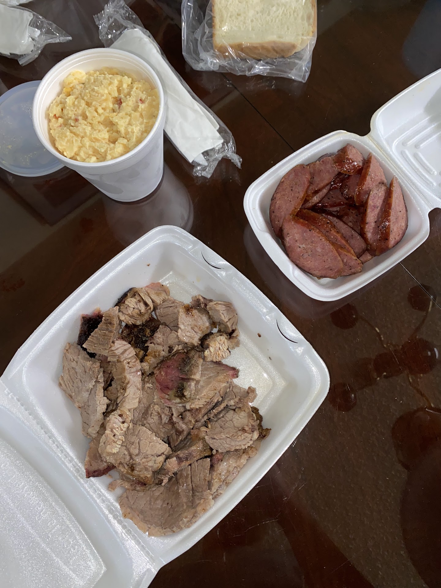 Read moreWent inside at 11:30 Saturday morning, placed an order to go. Only one customer dining in the restaurant. He said his food was good. Before placing my order, I asked for some country gravy on the side, for my fries, they didnt have any made yet, didn't have any cobbler ready either. And they no longer sell cornbread. Don't understand how you can be open for an hour and still getting things ready. Ordered the beef ribs, full slab for $20 plus a side of fried okra. The ribs were small, greasy and lack flavor. Had to add the homemade bbq sauce, which was different. My dad ordered the loaded baked potato with chopped brisket for $15, it was huge and he said it was good. One if my biggest problem was the person who took the order, was struggling with basic questions regarding the menu. Was later told this establishment is under new ownership. This place has lots of fundamental issues for a bbq restaurant in Houston. I will not...