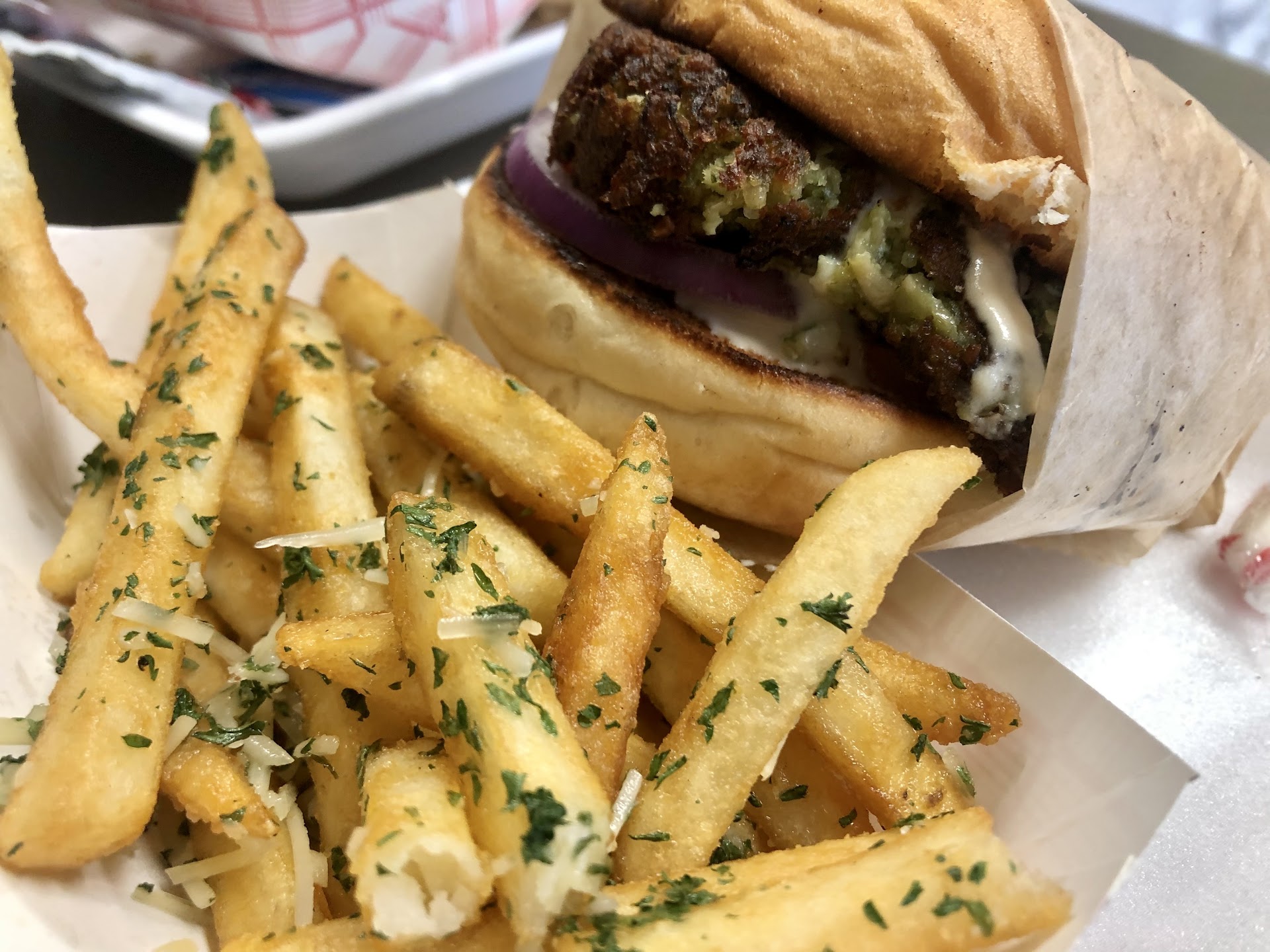 First, their burgers are overpriced. $15 for a double vegan burger. Burger king makes a similar vegan burger for almost half the price no less, and that's saying something since BK is such low-grade food. Wouldn't order this from them again at all unless it's under $10.