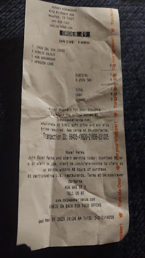 Read moreThis is arguably one of the worst Burger Kings In the city of Houston. I go here almost every day to get my breakfast or lunch for work. And almost every time there is a problem with my order. I ask for no eggs on the croissant... they still put eggs on them. They rush at the window and Only hear what they want to hear. I go here literally almost everyday I could have wrote this review a long time ago. But today was different I pull up to the drive-thru tell her my order as it is the same as every single time. I honestly don't know how she doesn't remember it by now nor remember my face, but I say a 2 for 4 ham and cheese croissants no eggs please. She continues to ask me if I didn't want cheese on the croissants sandwiches I had to repeat myself two times NO EGGS!!! She says she understands tells me how much my order is and to pull forward to the next window. Well when I get to work and get ready to eat one of my sandwiches as I'm opening it I notice it has ham eggs and no cheese... I know it's Burger King so I shouldn't expect much for customer service and all of that but still these people can't even get a simple order right they can't even listen the easiest thing to do at that job is probably LISTEN!! But they cant...