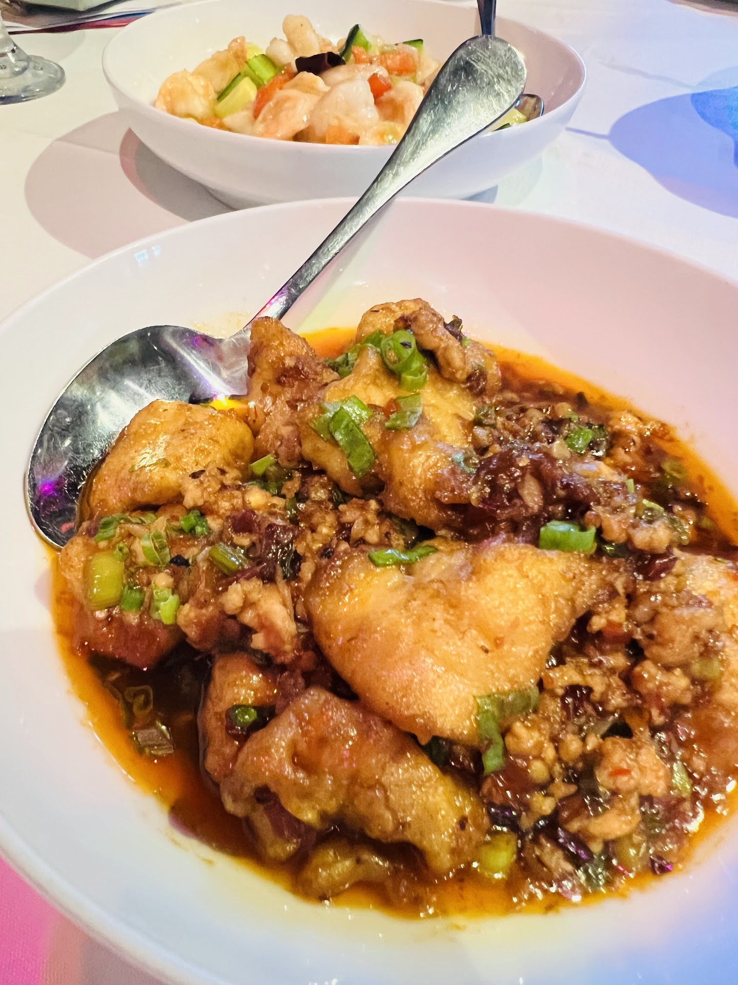 The crown jewel of the menu is, without question, the Peking Duck. Expertly prepared with crispy, lacquered skin and tender, flavorful meat, it’s presented with all the classic accompaniments: paper-thin pancakes, fresh scallions, cucumber, and hoisin sauce that elevates every bite. It’s not just a dish — it’s a ceremony, and one that Café Ginger executes flawlessly.