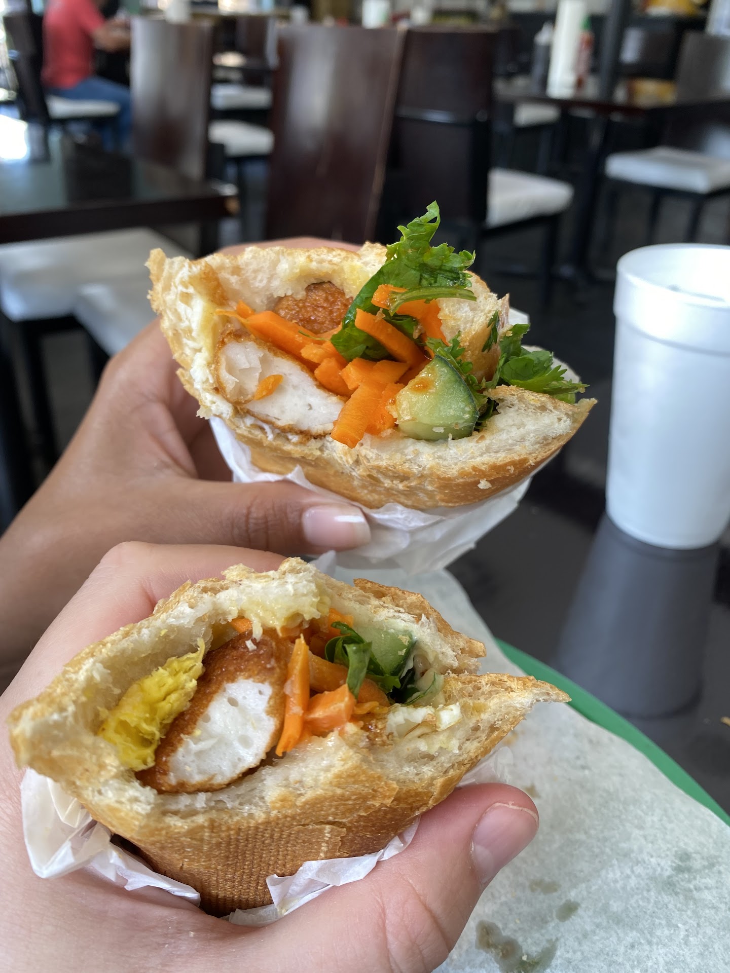 Read moreCali sandwich was a "dingi" place 18 years ago and their "Vietnamese" sandwich as sold to Americans were not quite up to par ... But they had a face lift along the way, better looking tables, less clustered & shabby, better quality sandwiches - even up to Vietnamese standard - and better than Givral sandwiches (which has closed due to covid) But still not as good as Thien An (which is 3 blocks away on San Jacinto); however, it was done to attract the "Americans". The prices are higher; standard add-ons, like a free soup bowl with your rice plates are now + $2; and the service is better! As for me, I am an American-Vietnamese who looks like an asian, speaks Vietnamese, but dress like a bummy-18-wheeler-driver in my faded jeans, work shirt, steel toe boots & baseball cap. So I get treated rudely like a poor asian.. even though my meal adds up to $19+ each time I eat there. The last time & final time I was there, I started off with their most expensive Vietnamese sandwich... Which no American would normally order... And I asked the sandwich maker for extra fish sauce on the side... The owner yelled out to not put any fish sauce in my sandwich but only put it on the side.. I objected and say please put some sauce on the sandwich... She said, no, we don't make it that way, you either have it on the sandwich or on the side..??!!? Power matters in the Vietnamese culture, much more than customer's service or customer's retention. I looked at her son, who spoke English well, and asked, is she the owner of the place? He looked uncomfortable and replied, yes. I replied, I thought so because she wouldn't make my sandwich the way that I wanted, and only an owner would do that.. He looked uncomfortable, so we both shrugged at each other and I walked out without ordering any lunch. Extra fish sauce on the side: 5 cents. Lost customer who can pay: $19/for each visit. Yep, this place is now geared for...