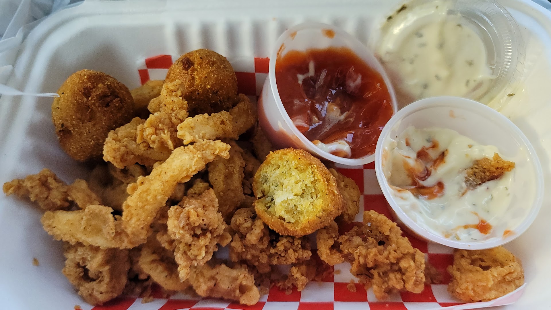 Read moreDisappointing. Fries were limp and heavy with grease. Fried oysters had almost no meat, were prebreaded from a bag and smaller than a thumb. Stuffed jalapenos were soggy, all heat with no flavor. Broiled stuffed catfish was thin fillets buried under two cups of mushy, oversalted stuffing. Even the rice was greasy. Coleslaw wasn't good or bad. Garlic bread was meh. Tartar sauce was okay. This was a to go order. I must note the place was crowded, and most folk seemed happy enough, which was encouraging. So, I'm not sure if I got a bad order, or folks are just acclimated to their local greasy spoon - every city has a few! Service was brief so can't speak to that. I feel bad leaving 1 star, but I would not eat there again even to try something else. Threw it all out after a few...