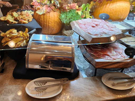 Salad bar:The salad bar has enough decent options to hit the spot if you’re vegan/vegetarian if you’re hungry. The brunch options, not so much. Very limited, only the French toast wasn’t a meat-based option. Even the potatoes had pork in them. No eggs or omelettes available.