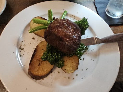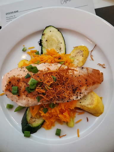 Read moreMy fiancée and I were initially thinking we'd eat at the Market part of this establishment on a Sunday night and discovered the adjoining restaurant. The server at the register of the Market was helpful and explained one was self-serve, the other side full service. We were heading to an event in 2.5 hours, so we figured we could do the full-service Cellar 7. We were greeted by the bar tender upon entry and the server from the register also served us. The crowd was light (2 couples at the bar, 2 women at one table seated) and possibly 2 servers working. I know that can lead to either a good experience or a horrible one, although it seemed appropriate with the guest #s. Our server was kind and professional. We had an extended wait to order because he was working both sides of the establishment and the order once provided took an extended time to arrive. We began to question if it were entered at one point, but it came out. My meal was a stuffed Chipotle chicken with broccolini it was served wonderfully hot and was delicious! I enjoyed it all. My fiancée on the other hand had salmon with a glaze, spinach risotto and sweet potato chips. He was not as excited about his meal, he was not able to taste the glaze that was to be on the salmon and we both imagined the sweet potatoe chips to be more than more of a garnish topping. However he enjoyed the risotto and he ate the rest of his meal, we did not believe we would have the time to make any changes or request glaze without being late to our next stop which was in waking distance. Overall, we enjoyed each other, the atmosphere was great, service was not horrible at all, but could have been better. We understood that our server was working multiple roles. My food was great, my fiancée had a so-so experience but we felt that it is worth another chance. We still had a good time together, although we did not have time to order a dessert, ...