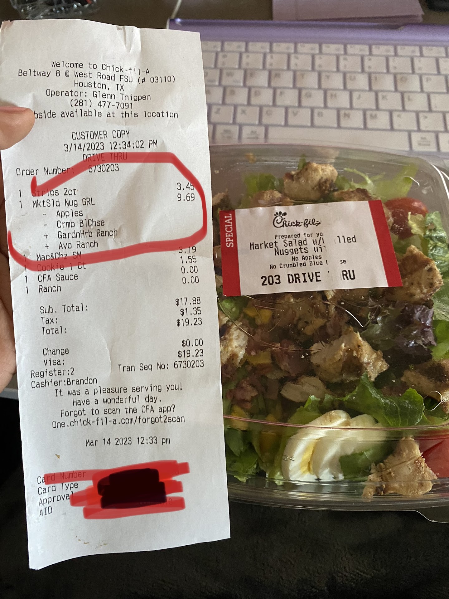 Read moreThis was one of the rudest experiences I've had at a Chick-fil-A. While being the next in line, the employee Jennifer who rang me up, looked me square in the eye left the counter to do a small project then came back with "next in line". She didn't even say hi when I approached, just stared at me. When I asked for sauce after she asked anything else, she got an attitude, I guess I interrupted her script. She didn't give .e a receipt nor asked if I wanted one. The manager "saved the day" when he delivered my food and asked How I was doing. I get back to my store to discover my sandwich was well over cooked and the bottom bun was burnt. The ball was dropped all around at this location. Thankfully I usually bring lunch so I won't be missing out by not...