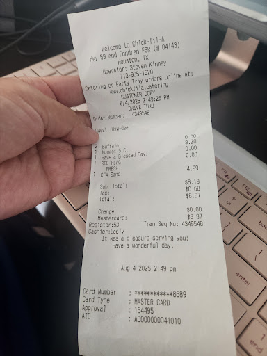 One thing I really appreciate is how clean and well-run every Chick-fil-A location is. The dining area is spotless, the restrooms are well-maintained, and the staff are constantly checking to make sure everything looks great. Even during busy hours, the line moves quickly, and orders are always accurate. The team runs things so smoothly that you can tell they take pride in their work.