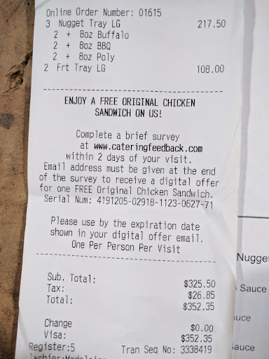 Luckily I was able to catch their 400 nugget shortage and attempt at the double charge. What I didnt catch was the 3 large tubs of sauce they shorted me.