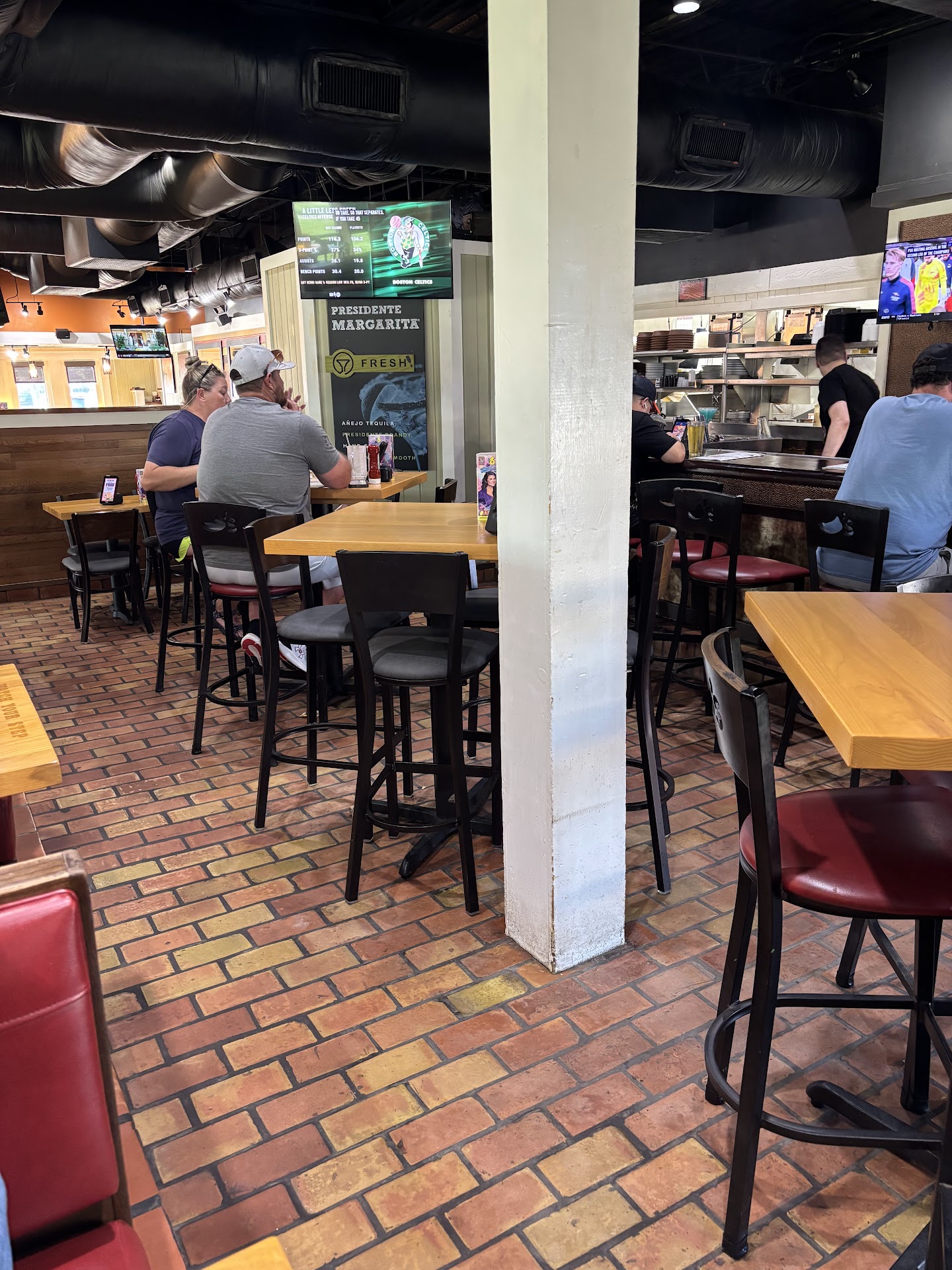 This Chili's is absolutely awful.The restrooms weren't clean, the food was overcooked .I don't know how you can screw up broccoli 🥦 in a microwave or however they cooked it's supposed to be green not yellow.My Mom ordered the margherita chicken it was so dry it was like eating cardboard .The only good thing was our server he was great .The manager couldn't possibly have cared it was a lady.We Came in at around 630pm .I was a manager and a server myself .So I know what managers job is.#1 She never came out to any tables at all.She didn't go around and ask anyone how the food was how was everything nope she stood behind the bar or kitchen area just standing not doing anything.All the servers were busy they were busting their asses but her nope .The dining room was dirty meaning tables were dirty she could hv helped bus and damn clean the floor on the way to the restroom 🚻 there was ice where anyone could hv slipped and fell I have never been to any Chili's where the manager hasnt bn busy.She wasn't doing paperwork she wasn't helping the servers for shit or any customer at all.I bet you anything you could go look at the cameras and see what she did for the hour or however long we were there.Sad to say we won't be back at this location due to the management .If a manager can stand around and not ask 1 customer how is everything?or Thank you for coming nothing then Why would anyone want to go back it's sad because Management is everything if it's bad then restraunt fails.Just 1 question or acknowledgement would have made it seem a little better .I do and will say the servers were working hard.Our experience wasn't bad because of them that was only thing good 👍.about going.Thecook was bad n the manager needs to take a class on how to manage.I didn't see a busser either that's why It was so messy but if she had time to stand she could hv helped run food clean a table and definitely the floor I hope no one slipped or fell .The ice was on the floor next to the booths on the left in the middle of the walk way to the restroom.If she was doing her job walking around checking on customers She would have seen it on the floor .In my opinion I felt like she's given up or just doesn't care . It wasnt busy enough for her not to check...