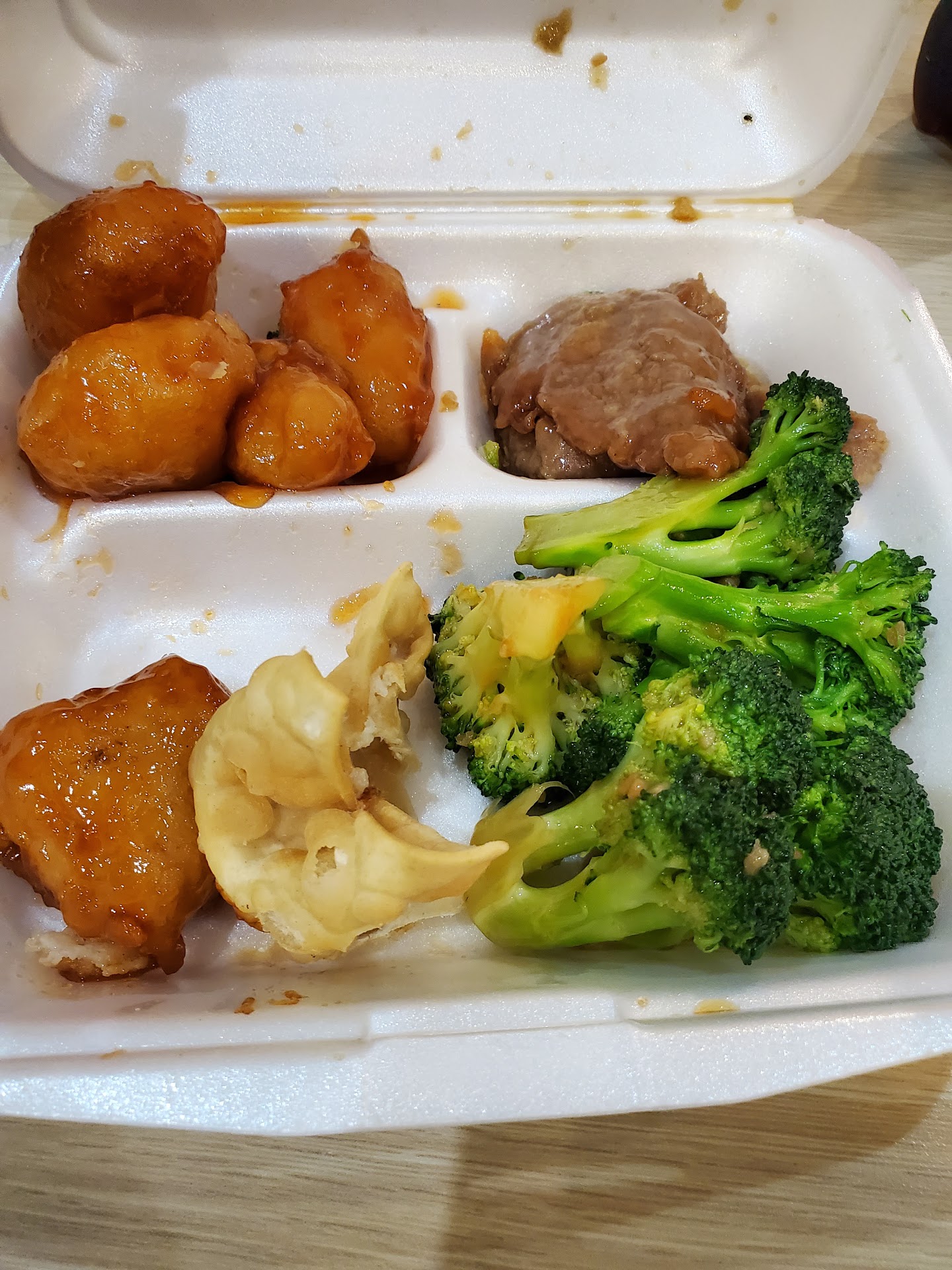 This is the WORST Chinese fast food I've ever had, I can't understand how people eat at this location my palate is definitely on a different level. When I walked in I didn't know if this was a restaurant or a variety store in the Hood. As I looked to see what I would have on my one entrée Styrofoam container, I thought the fried rice was hamburger meat with pieces of carrot. I watched as the rude young man behind the counter serve customers and filled their trays above the rim, I'm actually thinking that is the reason people keep walking in, cheap and huge portions. This place use to be so nice and inviting when it first opened now it's filled with junk, empty buckets stacked on to of one another in plain view amongst all the cheap items for sale. The food I ordered was extremely cold, the biscuit was hard and had probably been sitting there for hour's, the meat with broccoli had alot of gristle. I always give places a second chance I'm not sure if you can ordered off of a menu if you are able to I'll do that next time and if I have a better experience I usually change my review.. When I looked at what they had, I asked for them to stop and not fill my Styrofoam container I do not like wasting food.. What you see is what I brought home for my son, he...