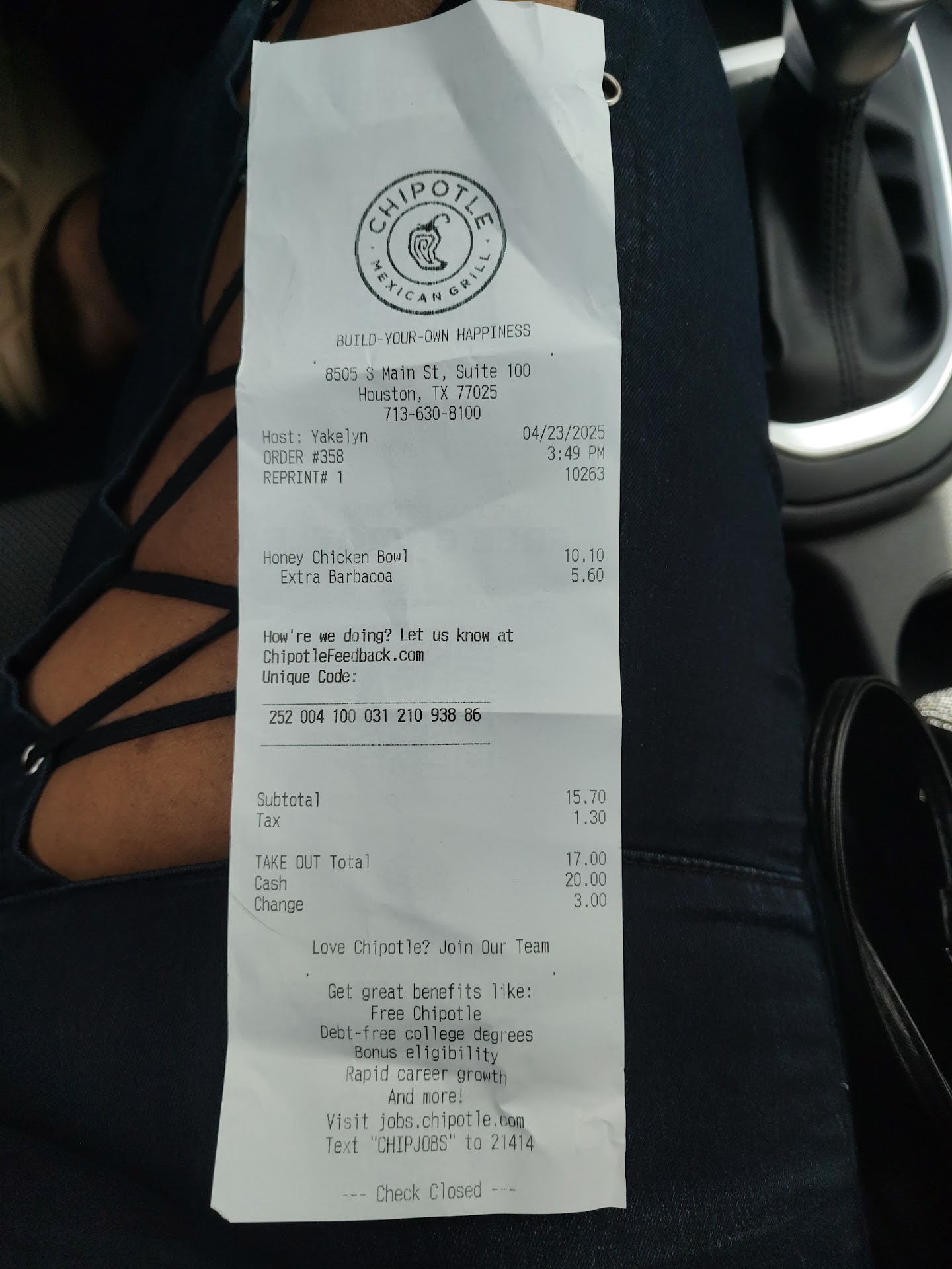 Edit: I'm a regular Chipotle customer, I usually order a bowl once a day at night. I used to go to the Pearland location everyday for 2 years and then went to the Friendswood location for 3 months. After moving back into Houston around May, I've been trying to go to this Main St. location every day (but they're closed half the time I get there or...