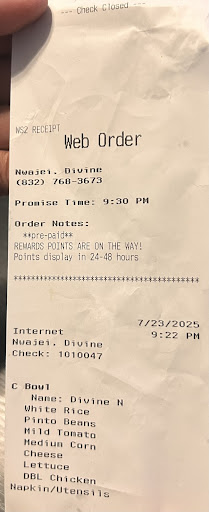As someone who frequently is a Chipotle, I am well aware of the portion sizes and what those look like. The black gentleman then proceeds to undercut me on each serving that was given. I asked for a tab more on rice and beans. I then asked for extra chicken (aware of the charge) and he proceeds to tell me that there’s going to be an extra charge for that. Again, totally fine I’m well aware and I say that’s fine I just need more chicken. He then with an attitude throws on a huge piling portion of chicken to the burrito that we both knew was too much. He then proceeds to smash and sloppily squeeze my burrito together, the foil didn’t even fit around it and it was very messy. It was extremely distasteful, and his energy was put into my food, causing it to come out horribly.