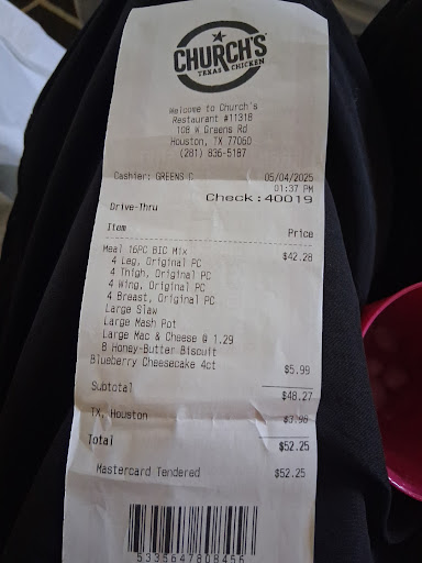 Ā Ā Ā Read moreThis place should be placed out of business, management tolerate un manner employees which ends up threatening me, good thug I didn't bring my concealed carry, a male employee to me he will forced me to leave bcoz I told him he gave me wrong order, I tried to act not to say a foul language so I won't turn out wrong coz I know there's. Amera on the place, he threat me ran out counter go towards me, but by the time he got out in door seeing me not leaving, ha change direction to go to phone nct door and telling lie to call police on me, he can call police while inside the counter, he thought he just can threat me try to rum towards me, if I hav a weapon I hav a right to protect myself and he gave me a reason to use it. Gas station ignore him knowing hhey had their own phone to call, he don't know I asked gas station manager if they own the churchs bcox the employer was rude that's why when he came to gas station mct door he know I had a problem complaining and they heard the employee was rude yelling me manipulating and reverse the situation. I end up calling police to them coz that's harassment and threatening already. Police can't take actions, how about when he ran towards me and hurt me for real? Police won't take action til no blood comes...