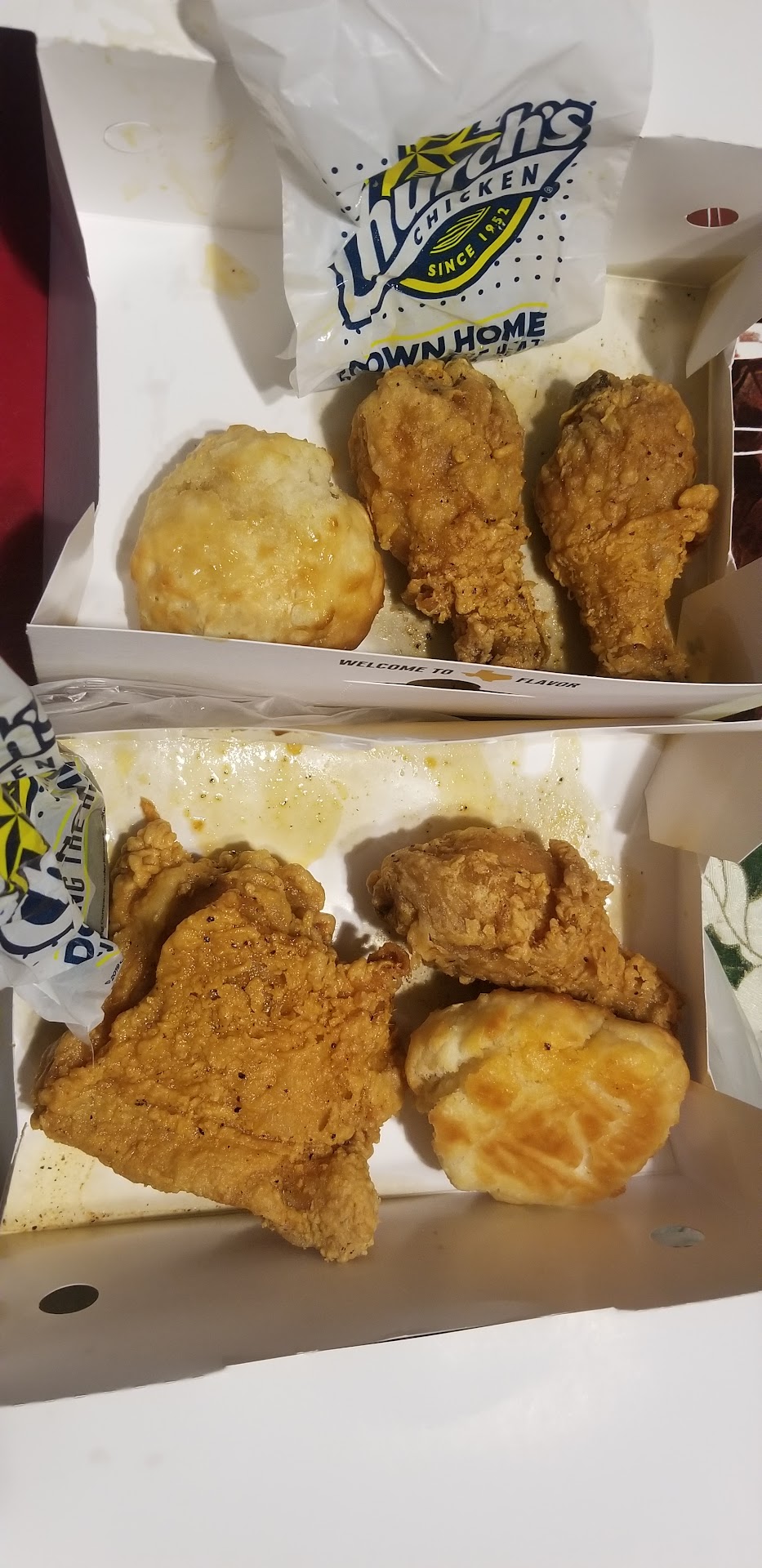 Read moreI WISH YOU COULD GIVE NEGATIVE STARS!!!! The only reason there's a star on here at all is because you have to put something up there in order to post your review. NEVER GO TO THIS CHIRCH'S!!! I went in and placed a very simple order for three people and was missing a biscuit out of one meal, a mashed potato and gravy out of another meal and an apple pie. I noticed this as soon as I got to the car and took the whole bag back in the store with me and told the lady at the counter what I was missing. She proceeded to argue with me and tell me that they had put those items in my bag. I assured her that I never received them and that I just wanted to get what I had paid for. The manager came to the counter and was very rude and told me that I needed to go back and check with my kids and see if they took any of that stuff out of the bag because they put it in there. They continue to make me feel like I was trying to get over on them for a biscuit some mashed potatoes and an apple pie. The manager finally told the lady at the counter to get the items that I was missing and then told me that I need to check my food the next time before I leave the store. I've been in the restaurant industry before and I know that it is the manager's job to make sure that all out going orders are correct. So instead of apologizing for the mistake they had made and making it right, the manager told me that I basically need to do her job for her the next time I'm in their store. I will never go back there and you...
