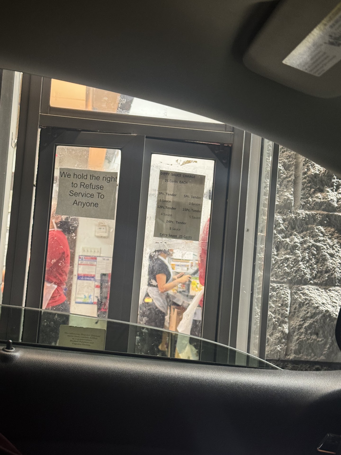 Read moreOk, Iâm a little suspicious of this particular Churchâs Chicken franchise location at 10658 Monroe Rd. Houston, Tx 77075. Even though, my food a piece of chicken was fresh and hot. However, despite the other past terrible reviews about their food that I just read about this location. Going forward, let me just say, I have not experienced any problems with any of the other Churchâs Chicken franchise locations that I have visited on a regular basis. However, this is my last time at this particular location. Due to the fact, there was a hand written note posted through their drive thru that states in large print, We Have the Right to Deny Service to Anyone. Ok, so now Iâm thinking allegedly for what reasons and why??? Alright, last time I understood my Civil Rights and checked the laws in the State of Texas, as well as the United States in this 21st Century. Explains that there shall be no discrimination of any type in any public business thatâs regulated by the Government and has a License to serve the public. Furthermore, the Texas Attorney General and Better Business office need to be contacted and have this Franchise business reported and investigated for any type of misconduct, discrimination and racism of any Civil Rights violation. Also, I was told very rudely through the Churchâs Chicken drive thru by an employee, this young man that said they do not honor and accept those surveys at this location. And, nor do they a have a way to enter the code on their machine for the Church's chicken listens survey website that offers a free piece of chicken with that code number from their website on your next visit. Now I see, as well, that they have a misleading advertisement with their business receipts on the back that is given out to public, asking you to fill out their survey. After making a purchase and doing business with their establishment. Well, something is strange and just not quite right about this particular Churchâs Chicken franchise...