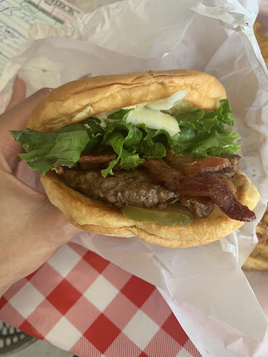 Burger doesn't seem to be a fresh hand made patty - its tough like it's either one of those frozen patties that you can throw right on the grill, or it was overworked when it was pattied out. Not a good, fresh burger texture.