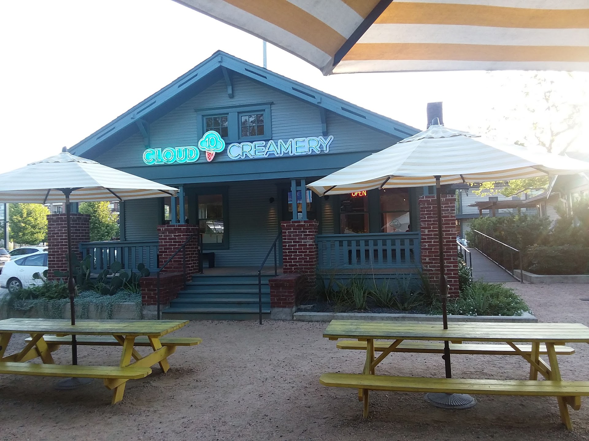 UNIMPRESSED!! Saw this creamery on Eat Like a Local, so had pretty high expectations. First impression was of front entry, patio and front door were filthy and in serious need of maintenance, which was an immediate put-off. Upon entry no one greeted us, or was at all welcoming, even though there was a man behind the counter, finally a girl showed up and just said "what would you like?" My husband pointed to the flavor he wanted, her response was a snarky " I need a name". My husband had a stroke and cannot talk very well and after a year of not being able to eat anything orally, is now able to eat pudding and ice cream, so we have been exploring the nearby creameries. In looking for a place to sit, very few choices inside and interior also in need of facility maintenance, so chose to sit outside. Only two tables on covered patio, both dirty and next to extremely dirty trash cans. There were a ton of long picnic style tables in gravel area, but again most needed cleaning and umbrella repairs. I am in the food service industry and understand how cleanliness and facility appearance, along with great service is especially important for your guest to return and continue to return. The ice cream was okay, just so-so, there seemed to be more mix-ins than actual ice cream. Probably will not return, too many other good choices in...
