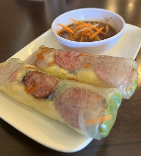 Read moreWent here for a to go order as it was close to school. It had a super simple menu, cheap prices and didn't take that long to wait for. You can't ask for anything more when it comes to a quick pick up for Vietnamese food! I got the #2 and the egg roll was delicious, the pork was as well! They give you some Chilli that was super spicy and plenty of fish sauce. I wasn't a big fan of the weird side but I just didn't eat it. It seemed almost like a picked onion but it wasn't pickled.