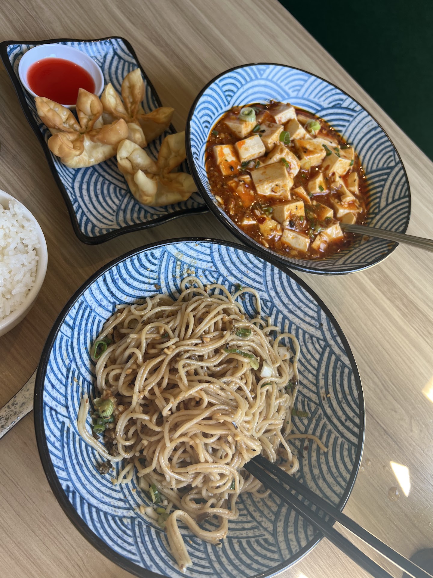 I ordered wonton soup, dan dan noodles, and mapo tofu. they give you this cream cheese thingy which was pretty good I ended up ordering 3. Anyways back to the wonton soup which was okay, I didn't like the pork wonton, too dry. Next the dan dan noodles were rly dry too. This was my first time trying dan dan noodles so I didn't know what to expect but I don't get why people like this plate. Mapo tofu was good. There was a hiccup where I specifically asked for no peppercorn and they gave me a plate with it - however they ended up remaking it for me which I enjoyed it very much.