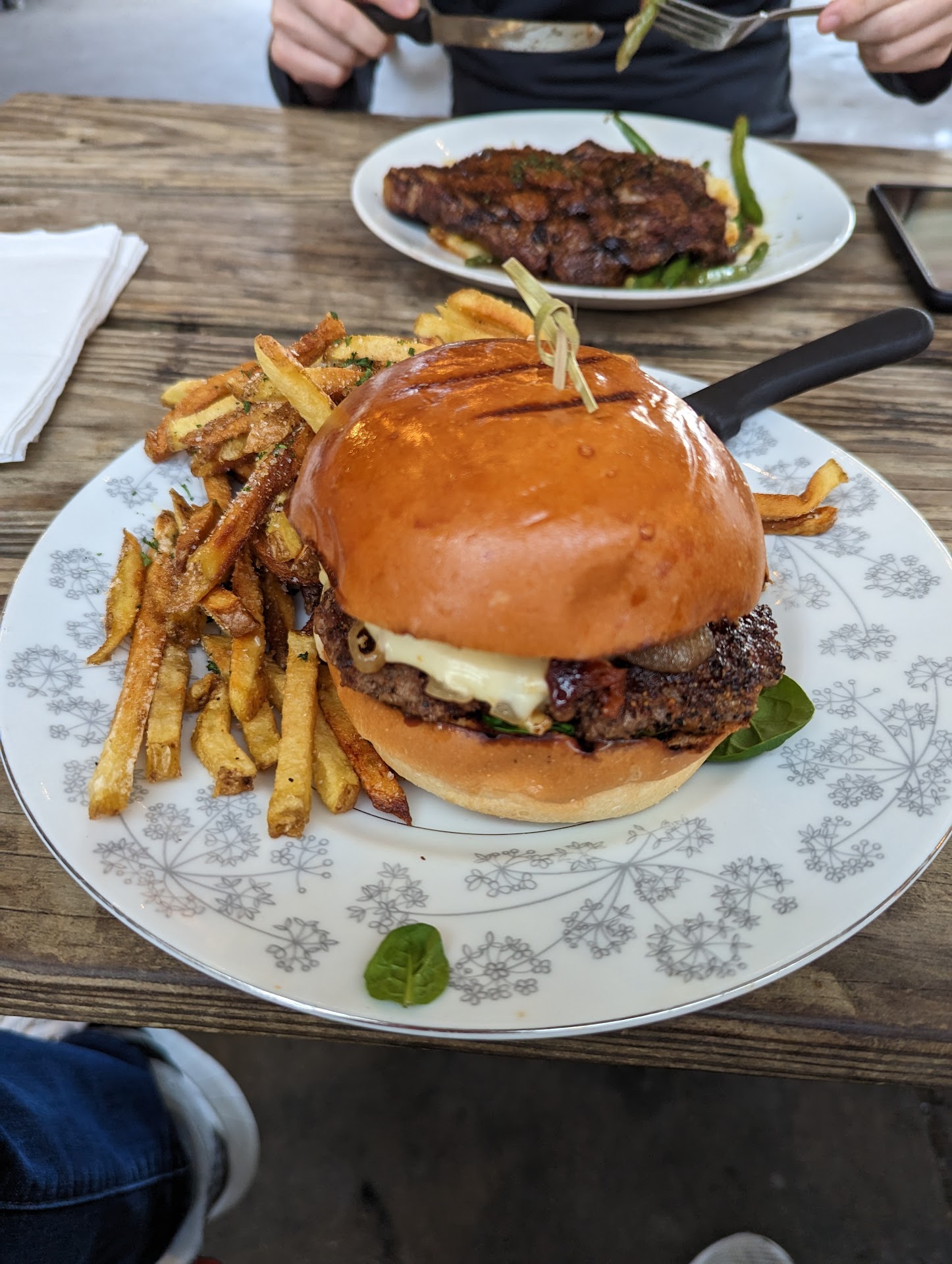 The burger was perfectly cooked to order - medium. The taste was extremely good - a crisp crust on the patty with a pink center and juicy to perfection. The jalapeno fried egg added a great spicy kick to the burger, but did not overpower the flavor of the meat. To me, a great burger is one where the patty is the main attraction, and this is one of those burgers. The fresh baked bun, however, was totally tasteless up against the other flavors. While I prefer a bun that does not overpower the burger, I am fond of one that offers a little flavor contrast. When I took a bite of the bun without the burger, it had a slight sweet taste, but that was lost when taking a bite of the full burger. This is not a major complaint on my part, but more of an observation. The bun is a very important part of any burger I eat, but this bun did not impact my burger experience in either a positive or negative way.