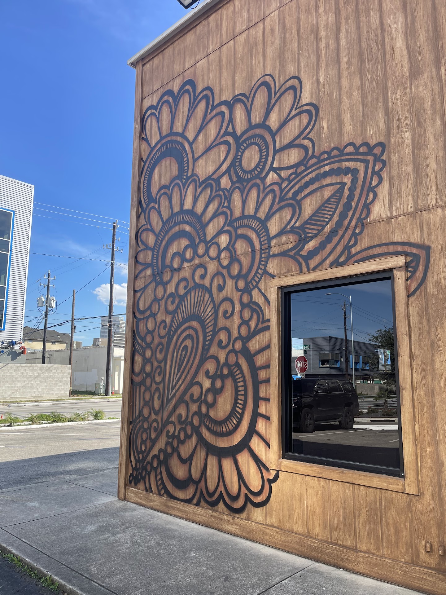 Can't give this place enough praise. Great location by River Oaks and Rice Military. When we arrived, the place was busy (but that's expected for great food and location). Well worth parking a couple of blocks away (there are neighborhoods across Durham and Shepherd) and walking over - even in this heat. This time my party of 6 were there to try out the brunch menu. It's served from 11-3 on BOTH Sat and Sun - how awesome is that??? It was a condense version of their main menu but had a little bit for everyone from the crazy gigantic chicken fried chicken, chicken waffles (my 2 boy's favorite from the old location and it still is their favorite. They claim its even better now!), the brisket scramble (PHENOMENAL!!) to the cool "Indian Curry Flight", which is a great sampling of their popular curry dishes.