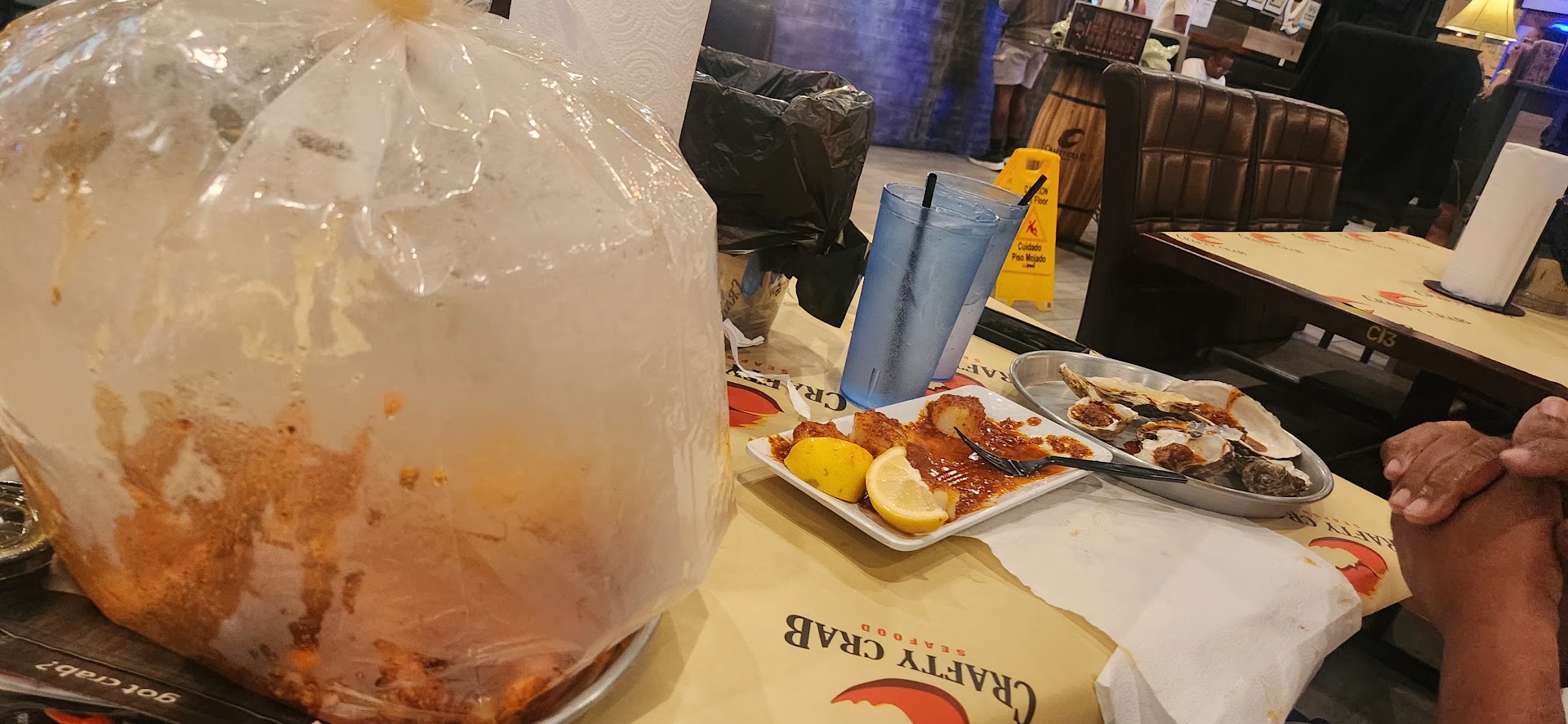 This is actually my 2nd time here. The first time was for my cousin's bday Aug 22, 2022. This time I came for dinner on 7/6/24. This review is based on both experiences at this restaurant. I will tell you that the Seafood is really good here. I'm a Seafood Snob, so I critique everything. They have a jukebox that you can play music. The two times that I've been there, they are always jamming. The customer service was on point once again! I ordered the headless Shrimp Medium Boom Spice and it was just right. The flavors and the taste was banging. My bf ordered the steamed Oysters mild boom and the Scallops mild boom. The Oysters were pretty good and the scallops were cooked just right. You can easily over cook scallops and they are ruined at that point. We ordered a few drinks and that starburst shot was hitting. It was a great night and great dinner. The place is pretty popular. My daughter frequents there and so does one of my long time friends. I have to get over here more often. The food isn't the only good thing this restaurant has going, but I love places that play music and show sports- that's how I bribed my bf to...