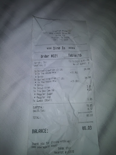 Took my girlfriend to get crawfish takeout so she could try them for the first time. It was basically as I expected except the crawfish were noticeably larger and more gamey tasting than the ones I got from the Crawfish Pot and Oyster Bar (previous review from early March 2023).