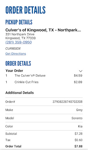Read moreI visited this Culver’s on my birthday on 9/7 to retrieve my birthday order. My order was made completely incorrect, and I immediately called the store, spoke to the manager on duty, and was told that the next time I wanted to come by, I would get a value basket comped. They also told me that my name was written in a book just in case they weren’t present. Today is 10/26, and I have returned to Culver’s for my meal. I have been told by a manager named Guillermo that my name is not in the book, and there is nothing he can do to assist. I even went out of my way to check my bank statement, as well as the Culver’s app to confirm my purchase as I stated. Guillermo still could not assist. I then had to ask for the corporate phone number, and what do you know, Guillermo does not know it. All he says is that I can get the general manager’s name and she’s on vacation, so I have to wait. I drove 35 minutes to come to this Culver’s today, just to walk away with gas wasted, my anxiety flaring up do to the uncomfortable feeling of having a man go back and forth with me in front of a room full of customers, and a growling tummy. I spend a whole lot of $$ with this company, and this location in particular every time I visit my mom in Kingwood. And I would have never expected this. I informed Guillermo that it would be pertinent for his manager to equip him with the ability to make sound decisions in these types of cases. I will be speaking with GM Amanda Dillion as soon as she returns from her vacation. And Hugo...