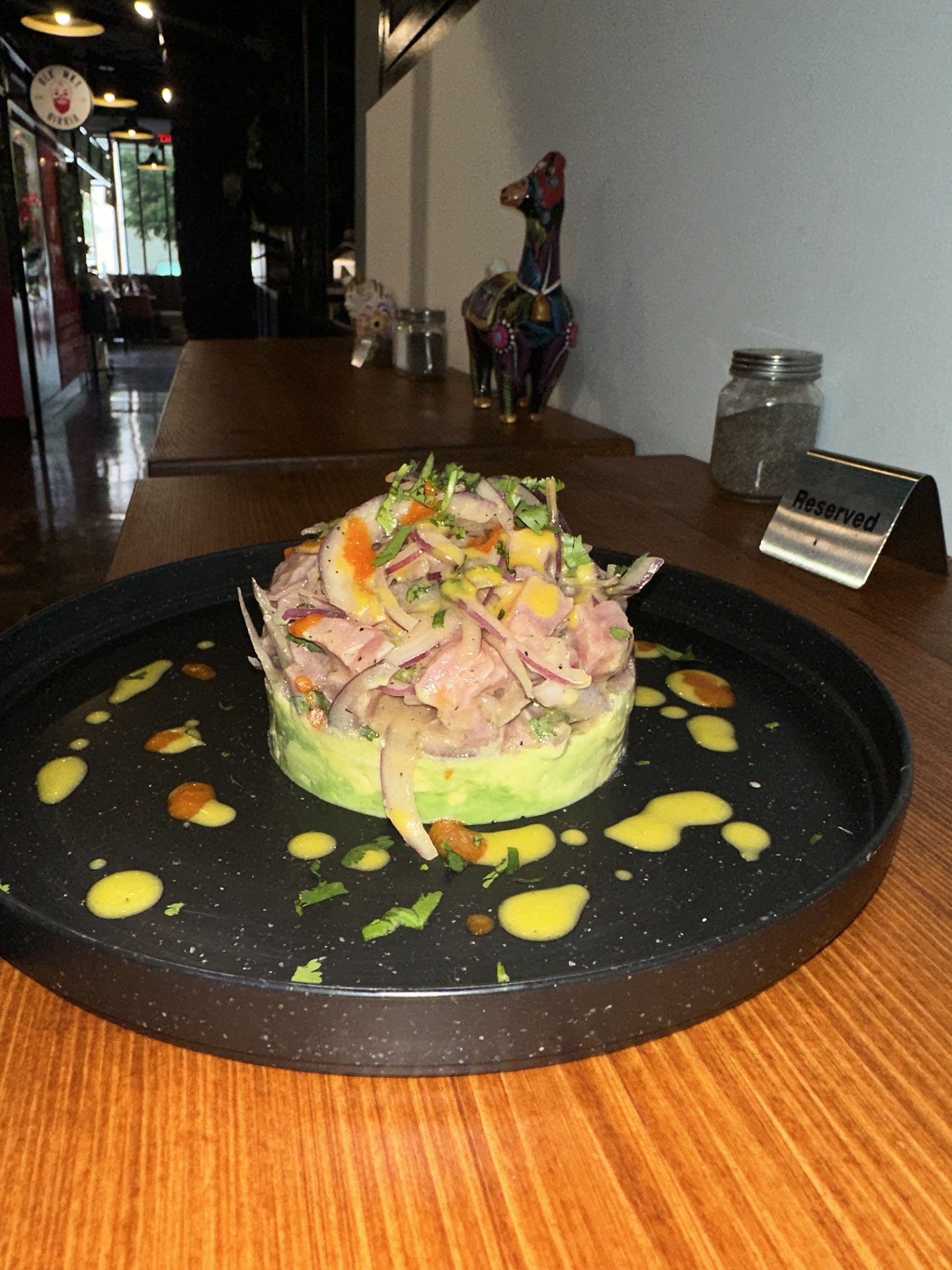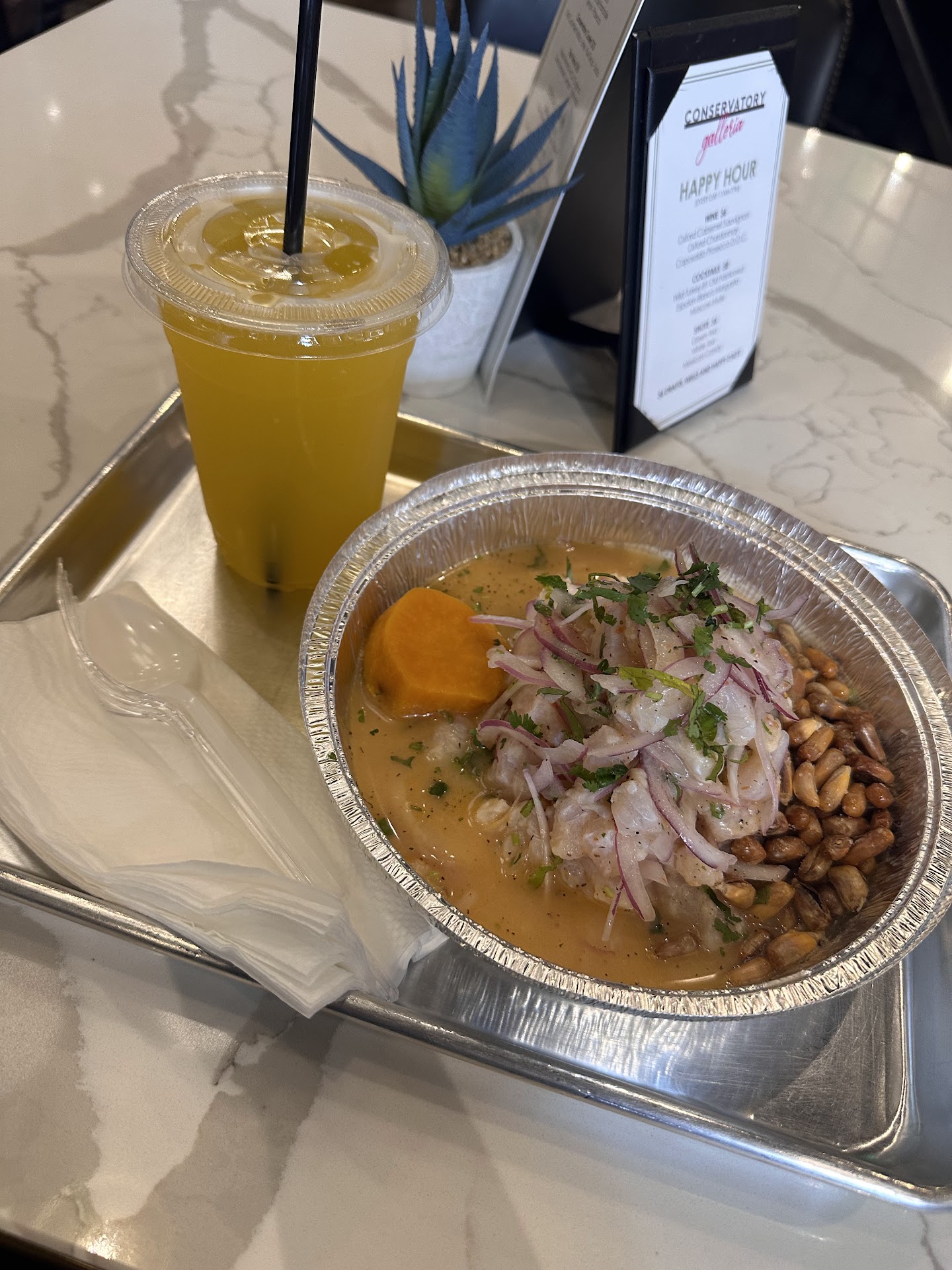 I love that this part is inside of the conservatory galleria where you have other food spots so it's great for happy hour or go to lunch with coworkers. My favorite dish from the Peruvian cuisine is definitely ceviche. I ordered it here and it's so fresh I asked for it spicy and yes it was spicy but so so good that I couldn't stop eating. As you see in the picture, it was a pretty big portion. And the maracuya (passion fruit) drink was so sweet and yummy and fresh. It goes pretty well with the ceviche. Their secret eats on the leche de Tigre each place has their own way to do this so it all remains so flavorful these days there's one it has to be one of my top favorites...