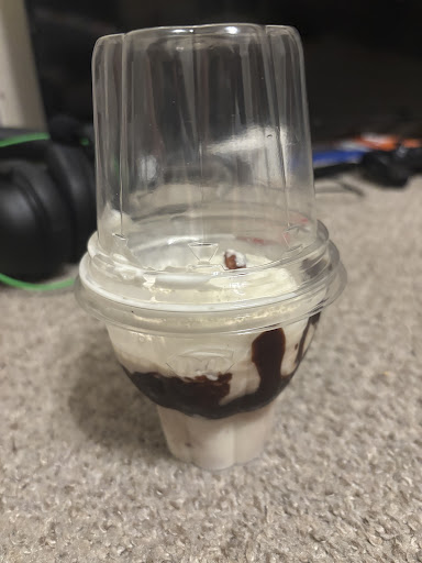 Today when we ordered, we asked for a burger combo, a sundae, and a small blizzard.
