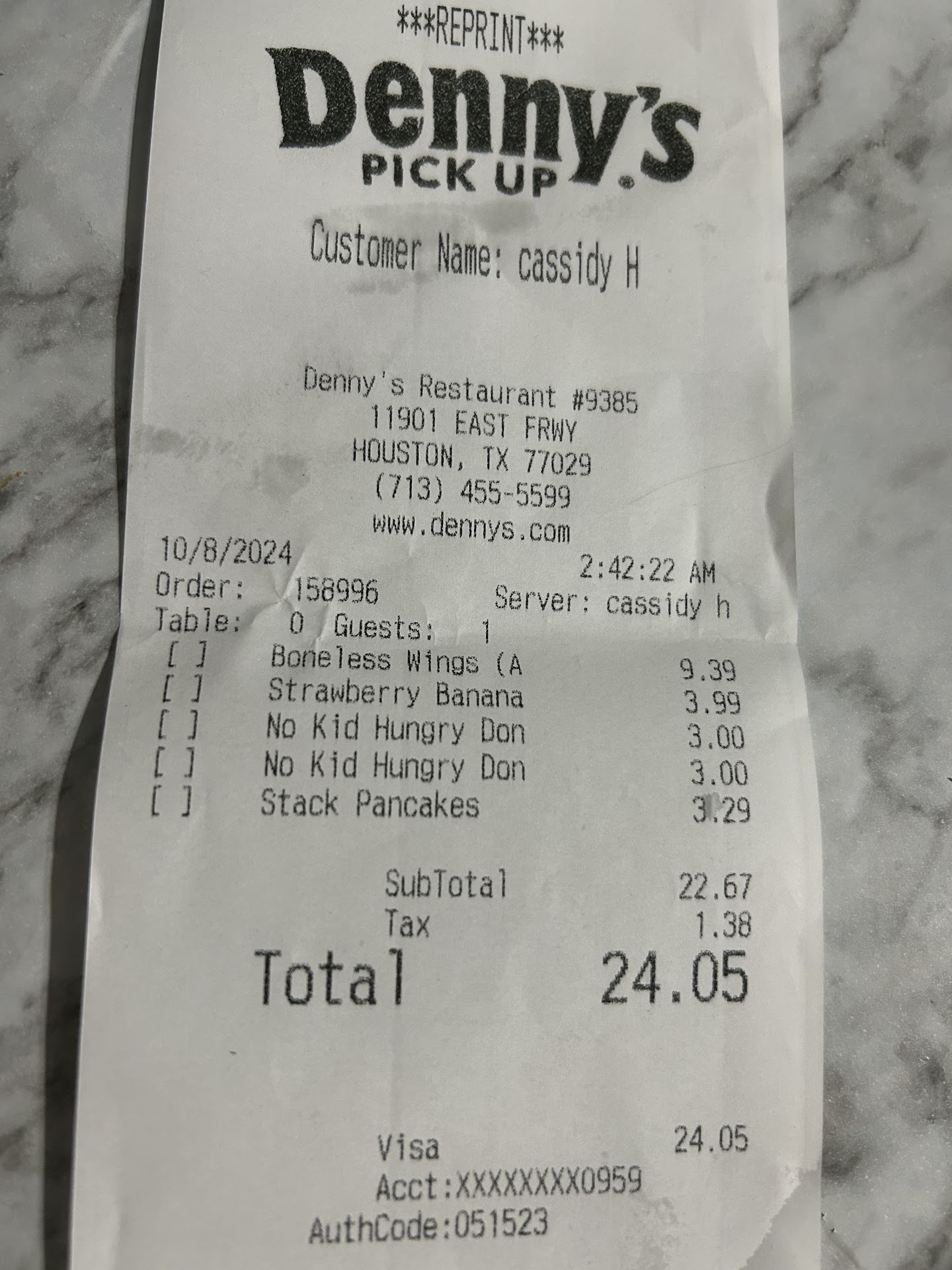 Denny's is great. I Love Denny's. I go to them in dozens cities as they're a reliably well priced and decent chain. So I went to this one next to our motel while in a trip to explore Houston...