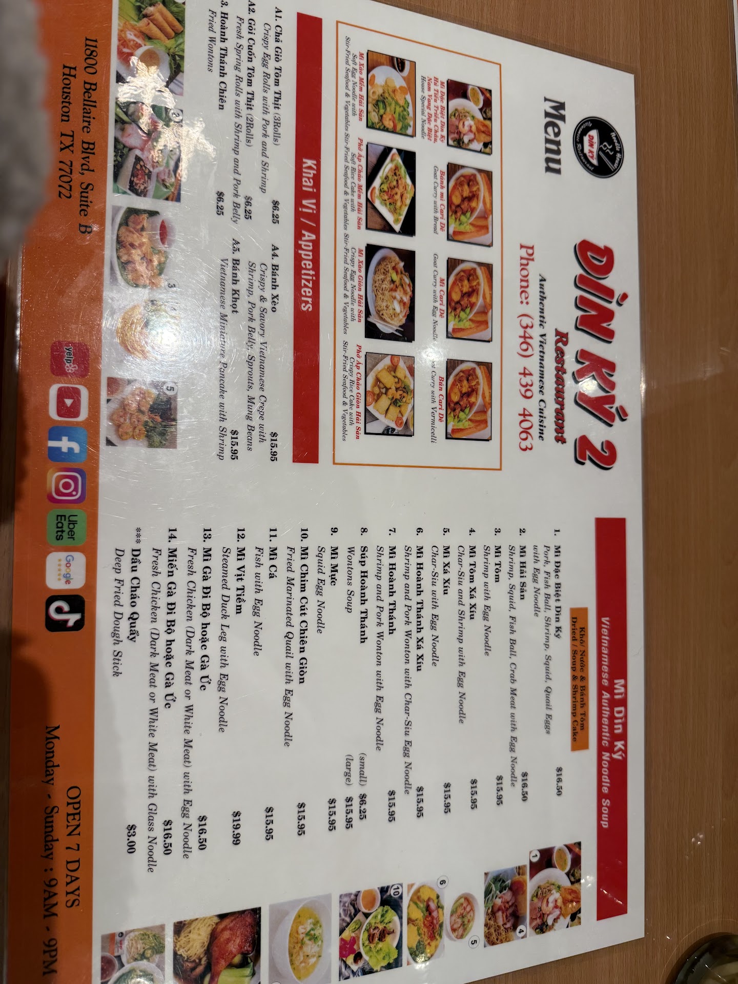 Generally, this place focuses in Mì (egg noodle) and hủ tiếu (rice noodle) dishes (soup, saucy, sauteed, and pan-fried) but also offers a few appetizetlr dishes and fried rice dishes. Their pricing is within range of other restaurants in Asian Town.