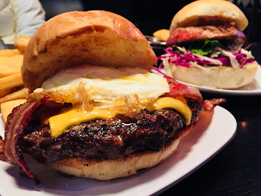 While the listed, printed selection and accompanying description of some burgers will surely raise eyebrows here (read further below), the “American Burger” I ordered was so perfectly executed that I almost wondered if the line cook who made it was moonlighting from some high-end restaurant. Medium-rare burgers are easier to fool the senses as the patty will naturally be more moist (and medium-rare is what I usually order), but this place pulled off to perfection a medium-cooked burger without drying it out or sucking out all the flavors that burger-eaters crave. And kudos to the aloof waiter who bothered to ask how I wanted the egg that topped my American burger (it came out perfectly over-easy and runny without any frightening cold spots) and the bacon—wow!—unburnt, not too-thin or too-thick, substantial but not overbearing (and darn good-looking because bacon needs to look good). *The egg and bacon were so well made that I might just come back here just to get a breakfast plate (if they have such). I mean, the way this American burger was all put together—really, you can tell that the guy or gal who made the burger CARES about burgers. Ok, so suffice to say that this place can deliver it’s American burger with aplomb. But the other burgers..? As I headlined above how some of the burgers listed here can raise eyebrows, the menu actually has Japanese wagyu burger AND Kobe beef burgers (for only a few bucks more, to boot). Come on fellas, really? First of all, that kind of burger should cost at least $100 (and Kobe is more expensive anyway, although this menu has Kobe being cheaper; see pic) let alone, the absurdity of making burgers out of perfectly marbled beef that needs to be eaten as steak (simple and plain). Why have wagyu and Kobe burgers on the menu when it’s highly unlikely that the patties are actually such (maybe 1%?) and for what purpose? Most burger/steak eaters know all of this so it’s insulting. What’s worse is that it’s just tacky. Which is why the dining experience here, notwithstanding the magnificently prepared and gloriously delicious American burger, can feel oh so tired (trying...