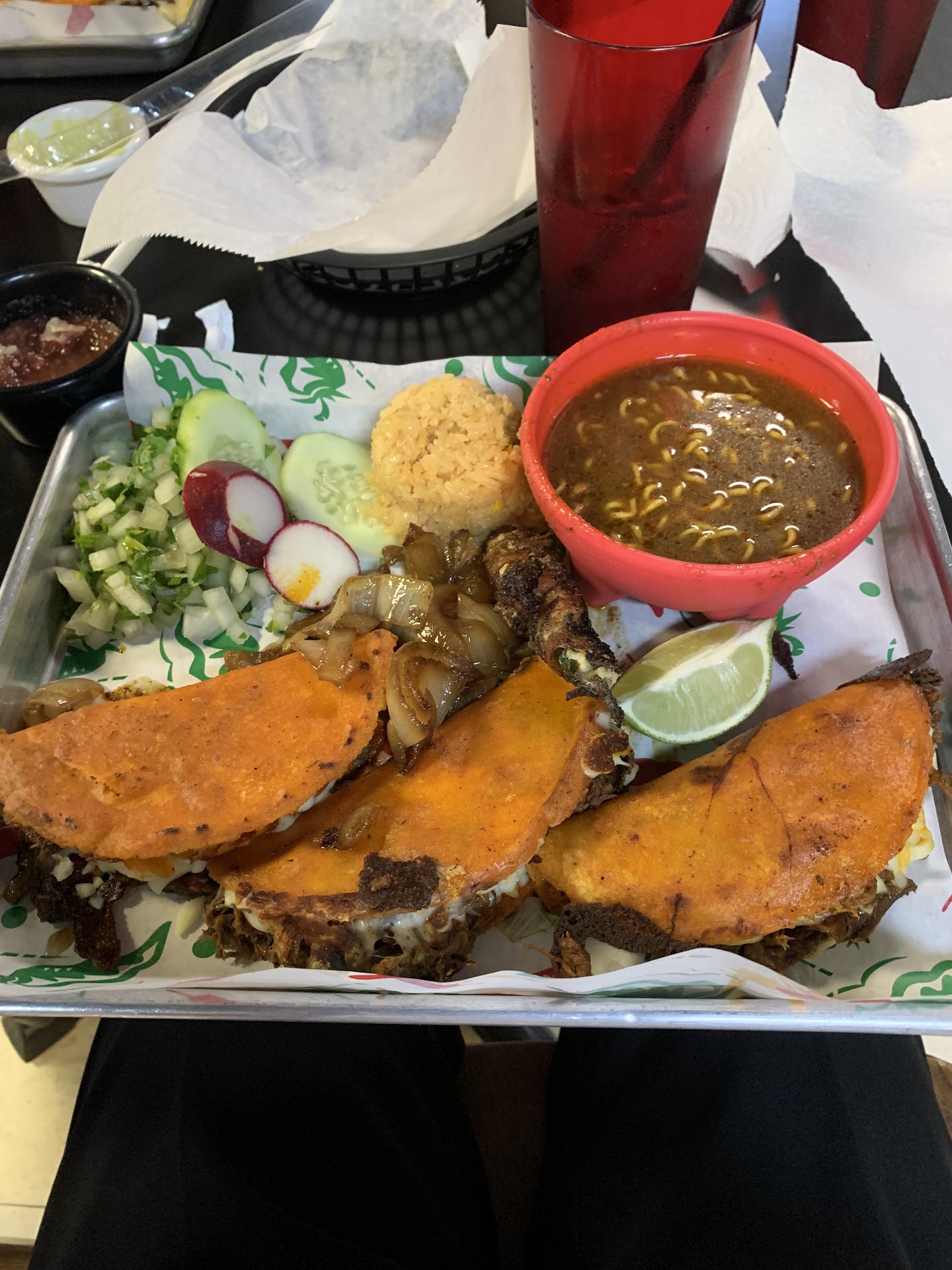 This is usually my go-to place for the birria tacos.... it WAS the best in the Southside of the city UNTIL this new management. Went yesterday and the first thing you are hit with from the waitress is "There are no refunds or exchanges on orders!" My sisters and I come regularly and had never been told this. Spidey senses started tingling. We all order our regulars..... first sign the waitress is gone for long periods of time she takes the drink order. She brings the drinks one at a time with several minutes between each trip where 5 were ordered between 3 people (one is a 3 drink special). Spidey senses really tingling. Ordered the birria tacos plates and surf n turf egg rolls and finally birria surf n turf tacos (first big problem). The waitress argued that this dish doesn't exist of which my sister shows on their Facebook page a whole advertisement of same dish name 😳🙄 (remember we are regulars) After several trips to the kitchen to confirm she's not making this up finally got the right dish ordered. Now to the most major issues. The egg rolls..... normally have rice in the sauce mixture that you can both SEE and TASTE. My sister notices there's more dough in the egg roll than the mixture and surf n turf. She cracks it open there's no rice. Call the waitress back and inform her that there's no rice. She states that it is.... my sister cracks open another piece to reveal no rice. She ask for a manager and the waitress goes to the kitchen. Then the lies start. One came back from the kitchen talking about the kernels of rice were extremely small..... while the other returns claiming because she didn't want cilantro GARNISH they removed the rice because of that request. After going in circles because they didn't want to remake NOR refund the food they finally buckled and took them off the ticket. SMDH and normal stuff like consomme was watered down not flavorful.... they also didn't put as much surf in the surf n turf dishes. OVERALL NEW MGMT SUCKS.... and trying to cut corners. Do yourself a favor and go to the OTHER...
