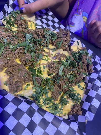 Read moreFirst timers! My husband and I were looking for something to eat since I get off work late. We literally live like 5 mins away and have never ate here. Last night we drove by around 11:30pm and no cars were in the parking lot and we saw no one inside but the open sign was on, the lights were on. We kept driving. Got gas, still couldn't find something good or decent that was still open that late on a Wednesday night. We drove back and noticed a man standing out front with a black hat, a purple shirt with black pants. I said he gotta work there 😂 we drove around an pulled up, probably scared him how fast we was going. He was glancing at his phone and we asked if they was open, replied with, "yes y'all can come on in." That made our day. We parked went inside the gentleman that was out front that helped us inside told us he was a manager from the downtown location. Service was amazing, top tier even though we were the only ones in there it didn't take no longer than 5 minutes for that parking lot to fill up because people started seeing cars. I'm sure they assumed like we did they were closed because the parking lot was dead. We got the smoked chicken fries, the smoked chicken nachos, and the smoked chicken tacos. It was so good. Flavorful and fresh. We were going to take it to go but the manager suggested we dine in only because the portion size was way different. dine-in you get a lot and to-go it comes in like a small box not worth the money if you take it to-go but definitely worth the money if you stay and dine in. We split the food and we were both full when we left and satisfied. Atmosphere was good. The music was good which set the vibe. Overall I would definitely come back and suggest this to friends... Great first experience. We were not the only first timers that night and others...